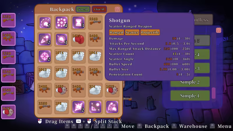 • The player has only one pair of hands at the beginning. He enters an endless monster tower and equips himself by defeating monsters and exploding equipment. In addition to equipment, monsters will also drop various upgrade props, such as increasing the number of scattering, increasing the attack range, etc. Players can freely combine these characteristics to build customized weapons and build various different schools.