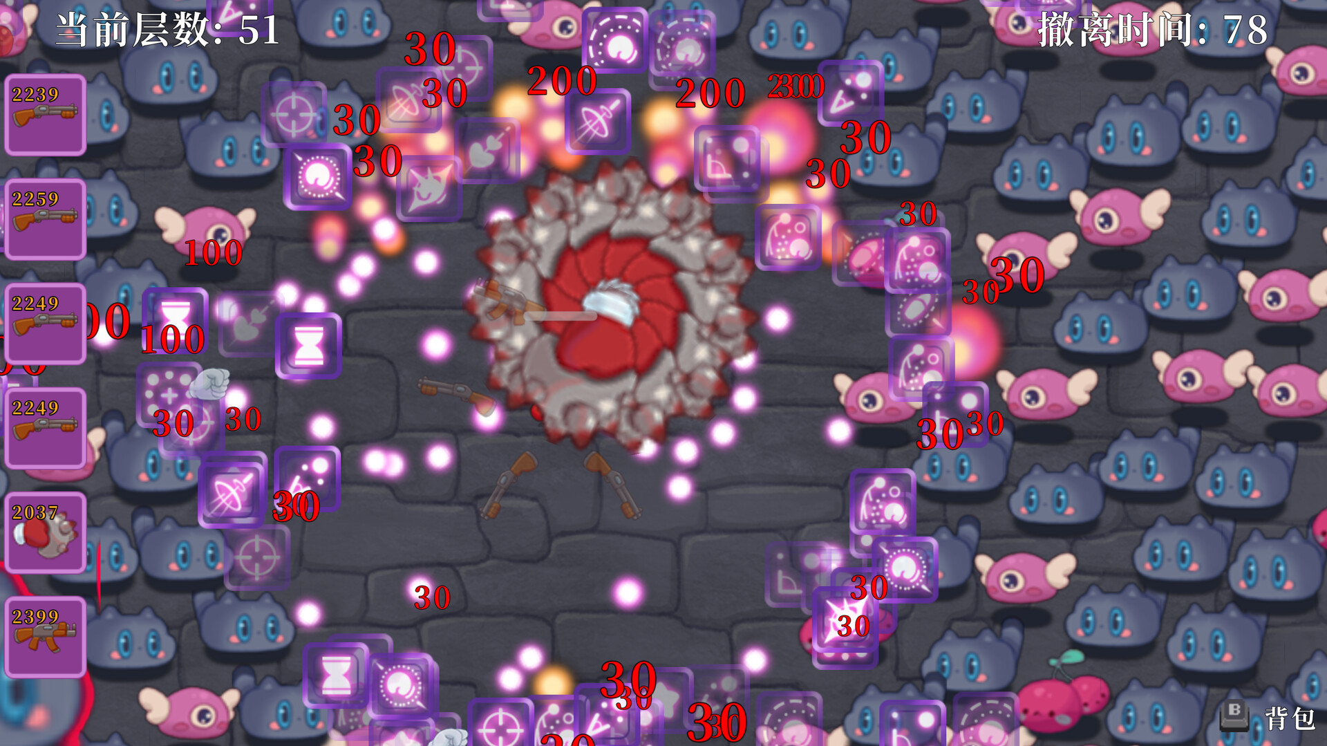 • The game is a classic vampire survivor gameplay. Players challenge the constantly refreshing enemies with their own customized weapons. Through customized powerful weapons, they experience the refreshing mowing gameplay, persist until the evacuation time, and evacuate with rich loot.