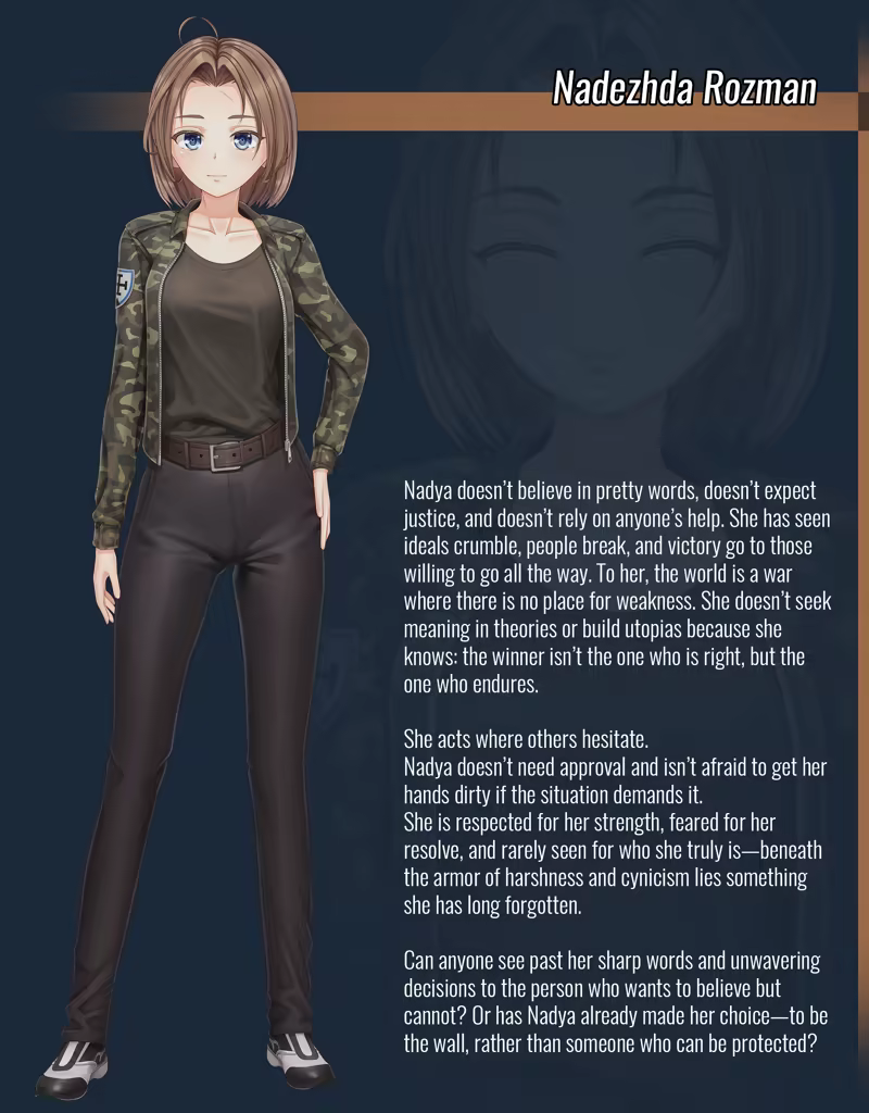 • Nadya – A hardened national syndicalist, ready to fight in a world where survival is not guaranteed.