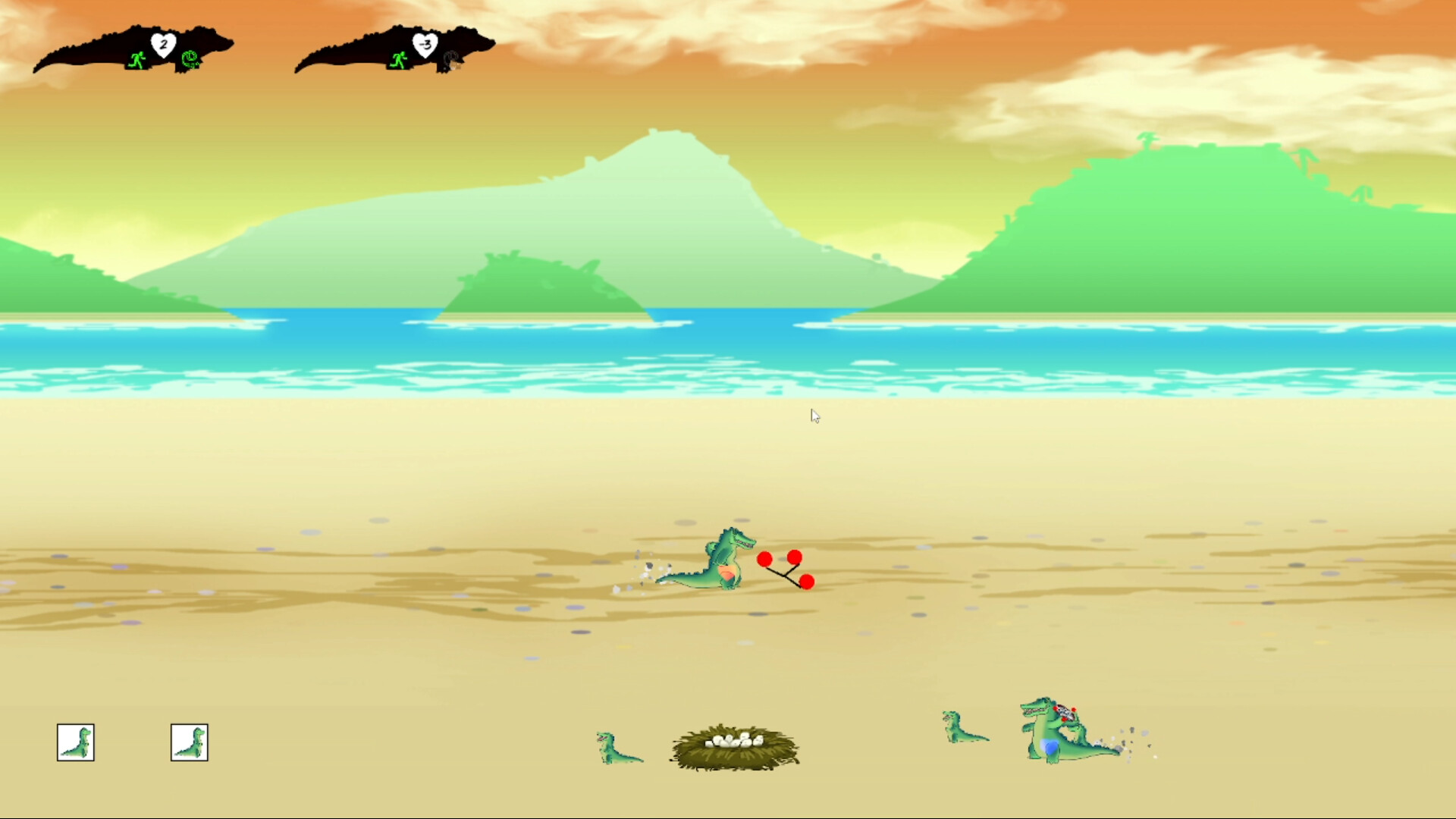 A 2D action game through various eras where adaptation is the key. The crocodile/bolodil must survive by evolving more and more.