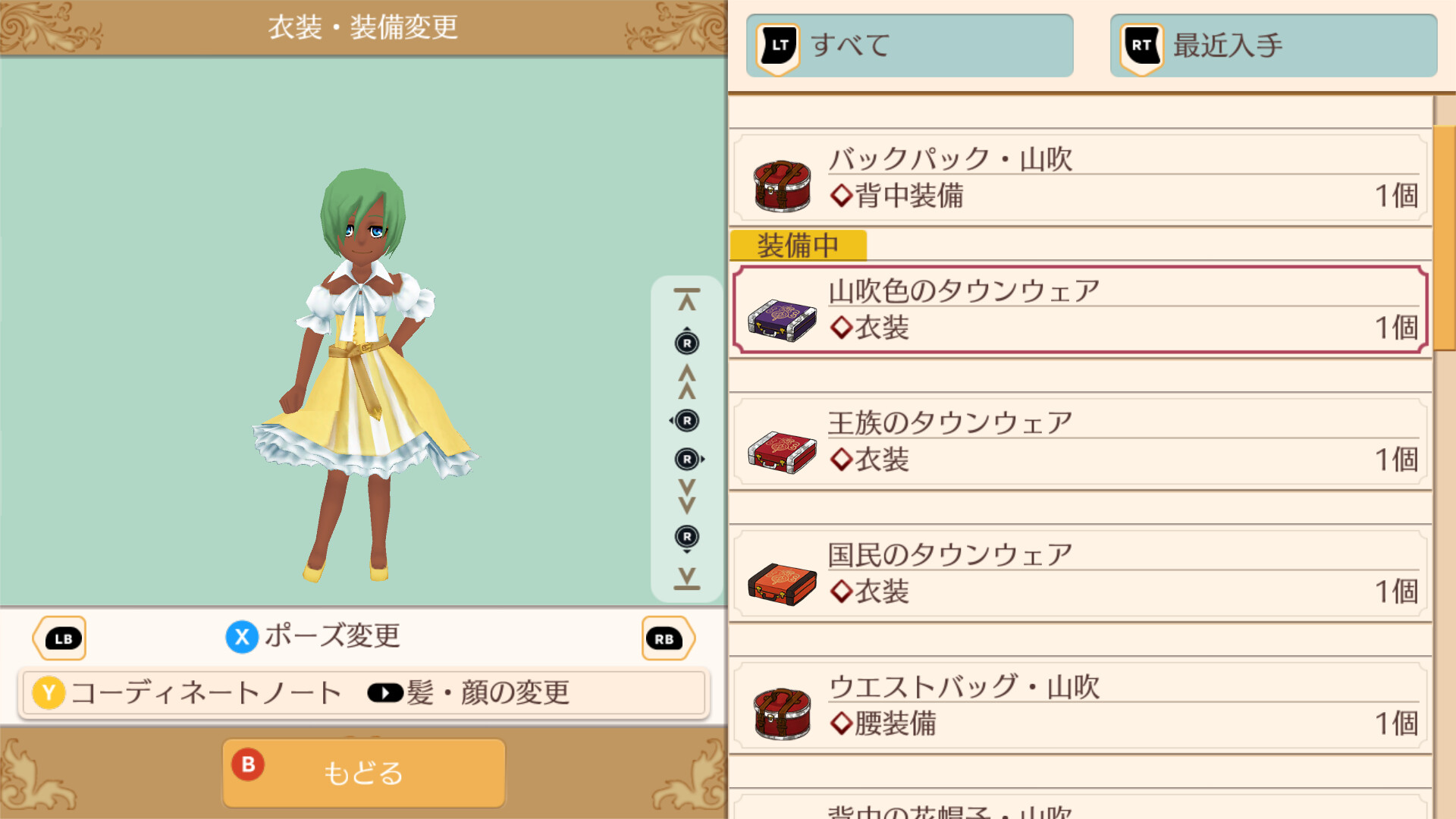 国民のタウンウェア、国民のキッズタウン、王族のタウンウェア、王族のキッズタウン、山吹色のタウンウェア、山吹色のキッズタウン