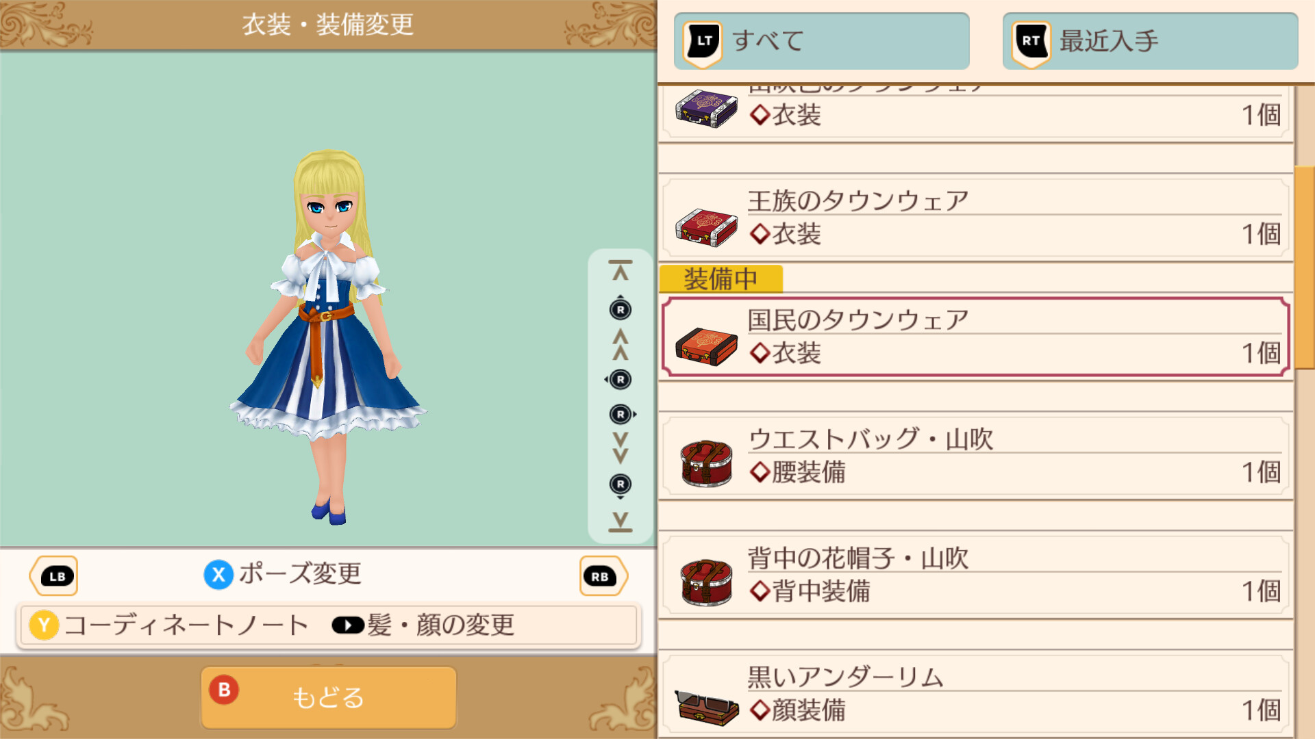 国民のタウンウェア、国民のキッズタウン、王族のタウンウェア、王族のキッズタウン、山吹色のタウンウェア、山吹色のキッズタウン