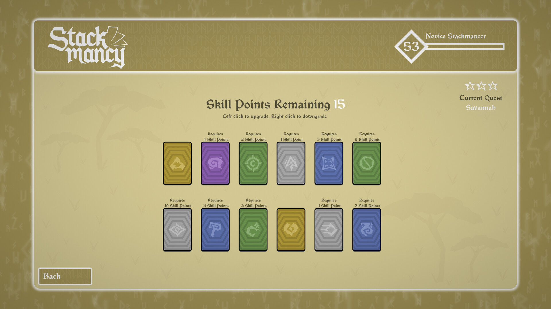 Regardless of if you win or lose, you'll gain experience, where each level grants a skill point which can be used to improve passive abilities and make you a more effective Stackmancer.