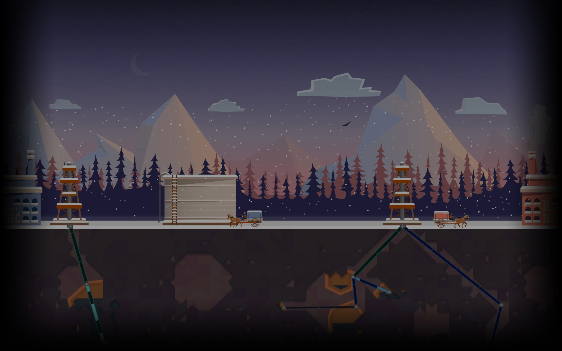 Lease land at the town auction and search for oil. Build a rig, create an efficient pipe network and bring up the oil to store it in silos. Sell the oil at the best times to maximize profits. Then buy essential upgrades in town to cope with rock, gas and ice. Acquire more town shares than your competitors in a bid to become the new mayor.