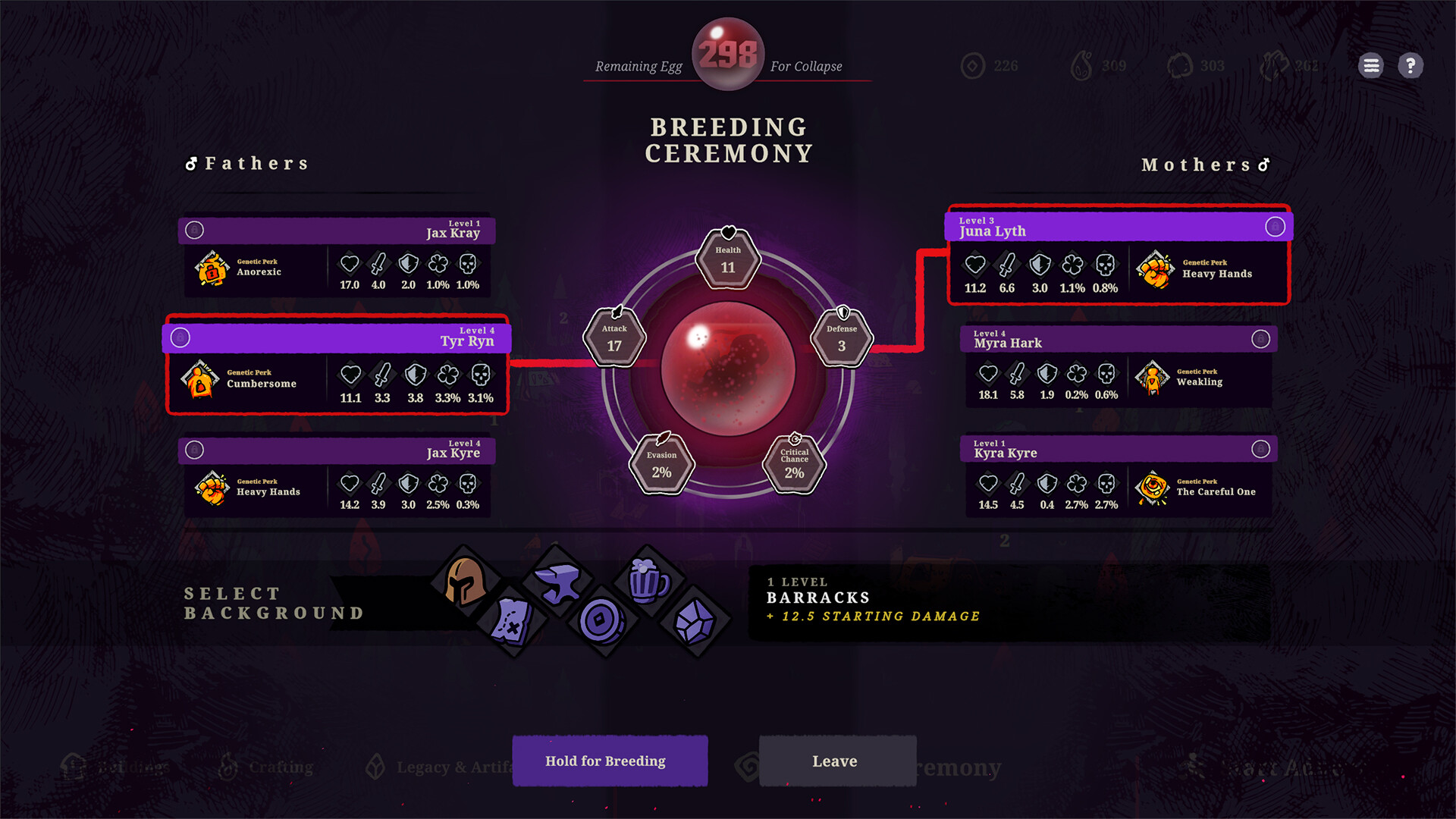 and create a new warrior. Your hero’s stats, gender, and genetic traits are shaped by