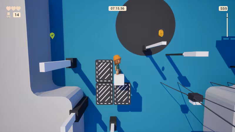 Mit einer simpel gehaltenen Steuerung versuchst du alle Sprünge zu meistern und jedes Level abzuschließen. Falls dir ein Sprung mal nicht so gut gelingen sollte, fällst du zwar ein gutes Stück zurück aber vielleicht schaffst du es ja beim nächsten Versuch. Die Level unterscheiden sich in ihrer Länge, Schwierigkeit, dem Zeitdruck und den Secrets die man finden kann.