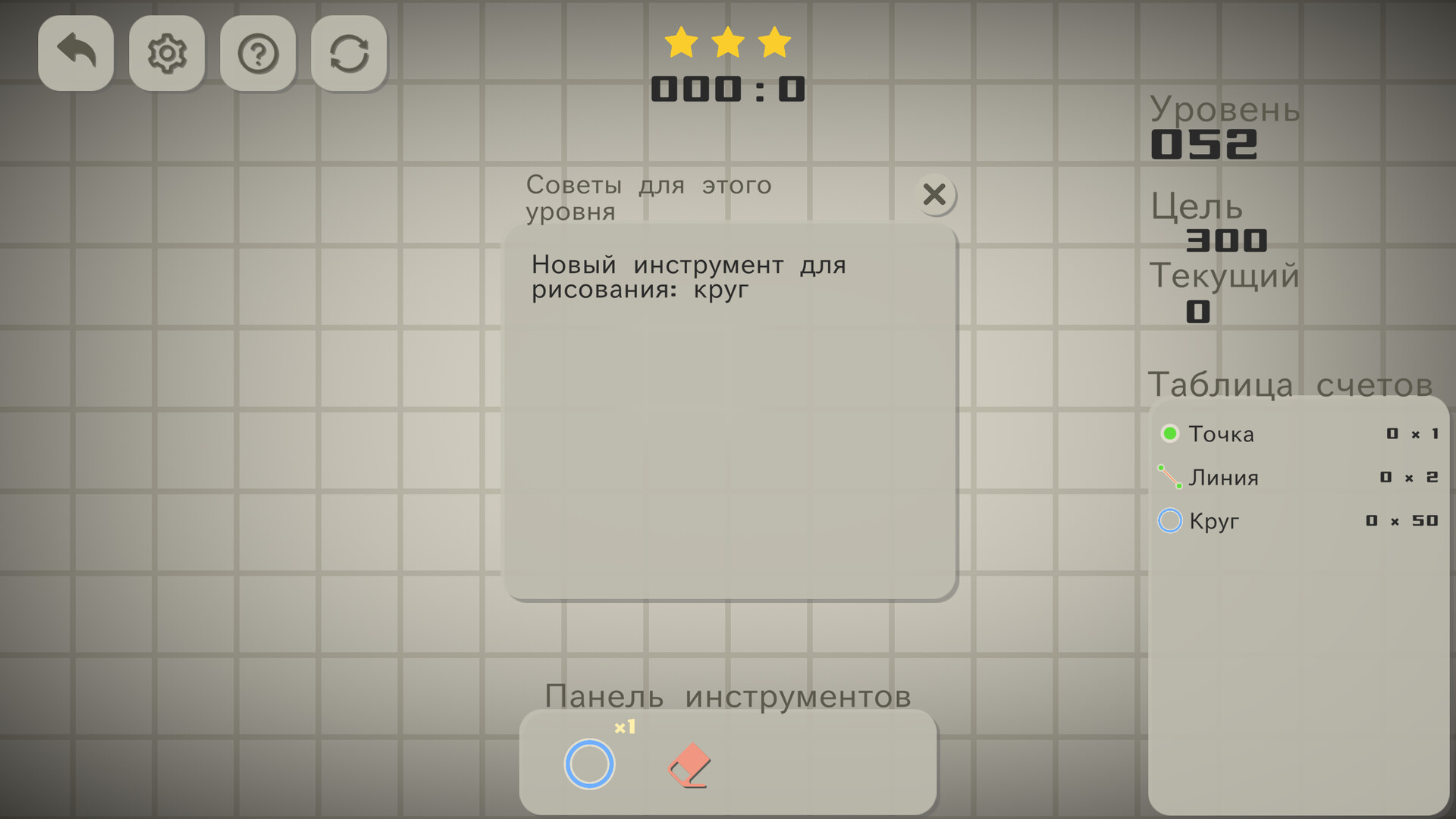 Создавайте фигуры из точек/линий/окружностей. Решайте задачи на время и погрузитесь в математическую эстетику.