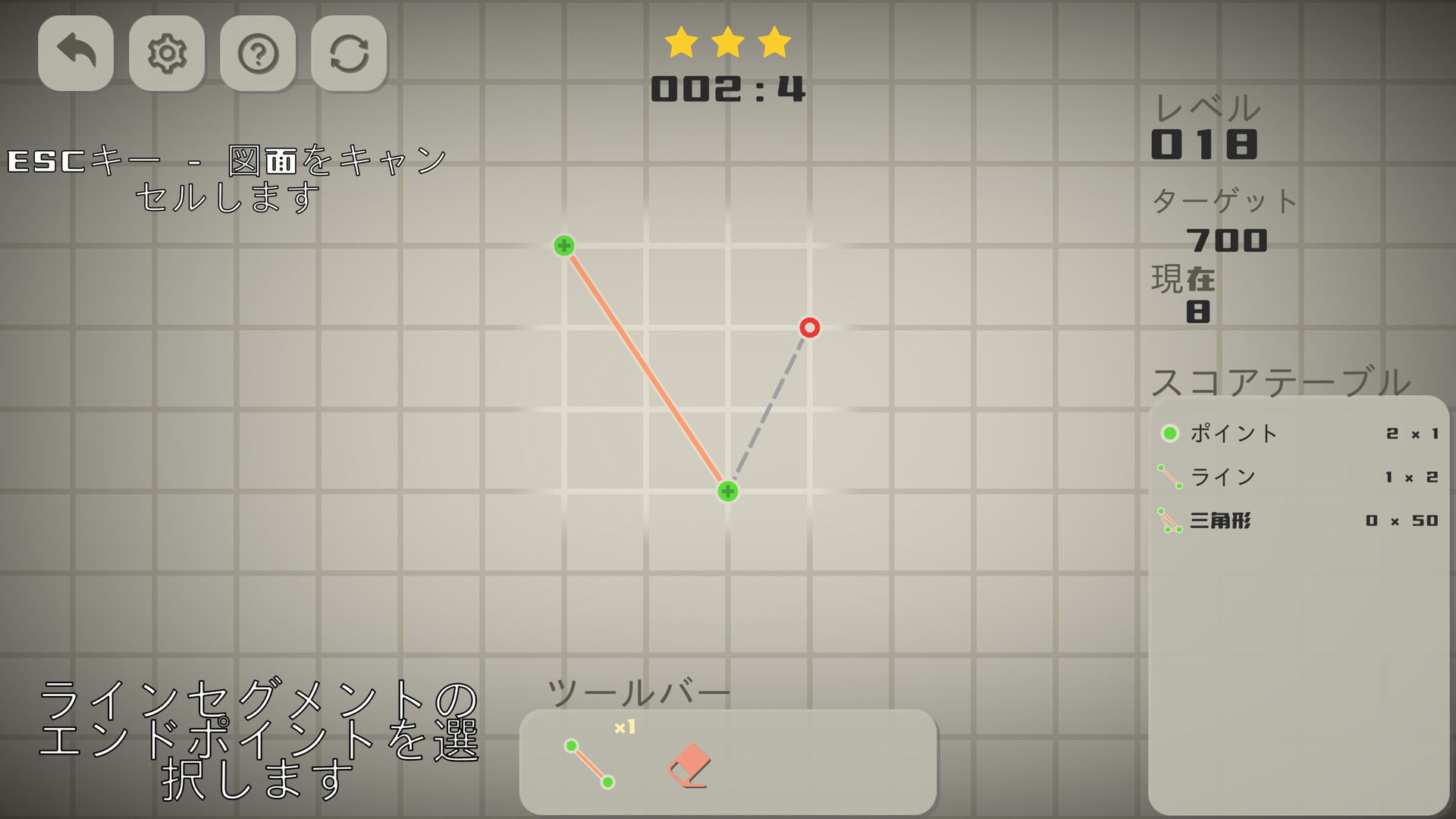 点・線・円などの基本図形で無限の造形を作成。制限時間内にスコア目標を達成し、幾何学の美を体感してください。