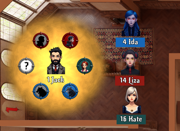 The detective can use a mirror on his hunting turn to reveal the number of beasts—not who!, vampires or werewolves, in the room. They will be aware they are under suspects and they will shift characters between rooms to cover their tracks.