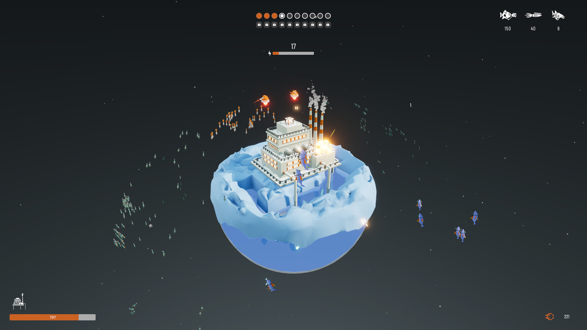 • Timed Waves: Survive until EMP charges, earning credit per kill before an EMP clears the rest.