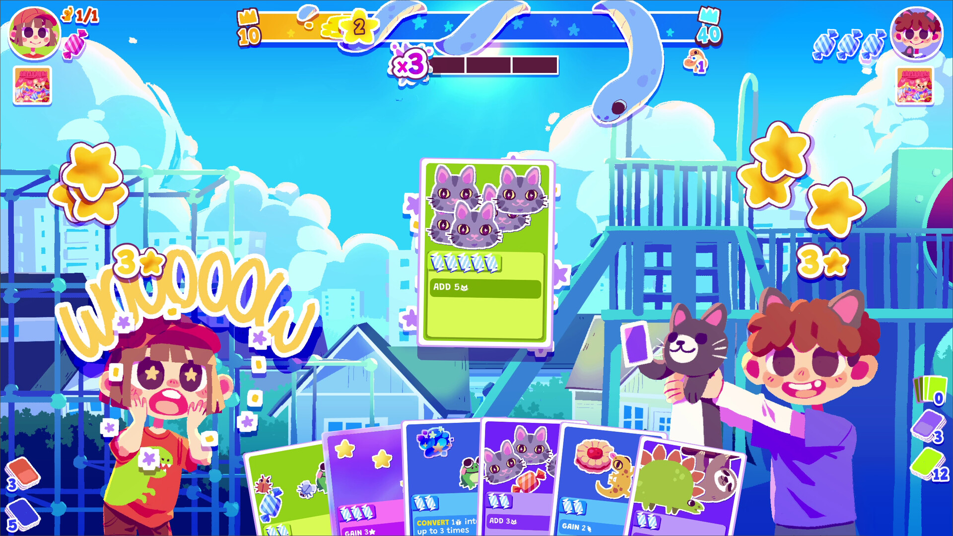 My Card Is Better Than Your Card! is an adorable yet challenging sticker sticking roguelike deckbuilder. Create your own cards with a colorful catalogue of stickers combining their effects. Collect more and more stickers, discover synergies and find your own playstyle with a deck full of your own creations to defeat your rivals in whimsical card duels.