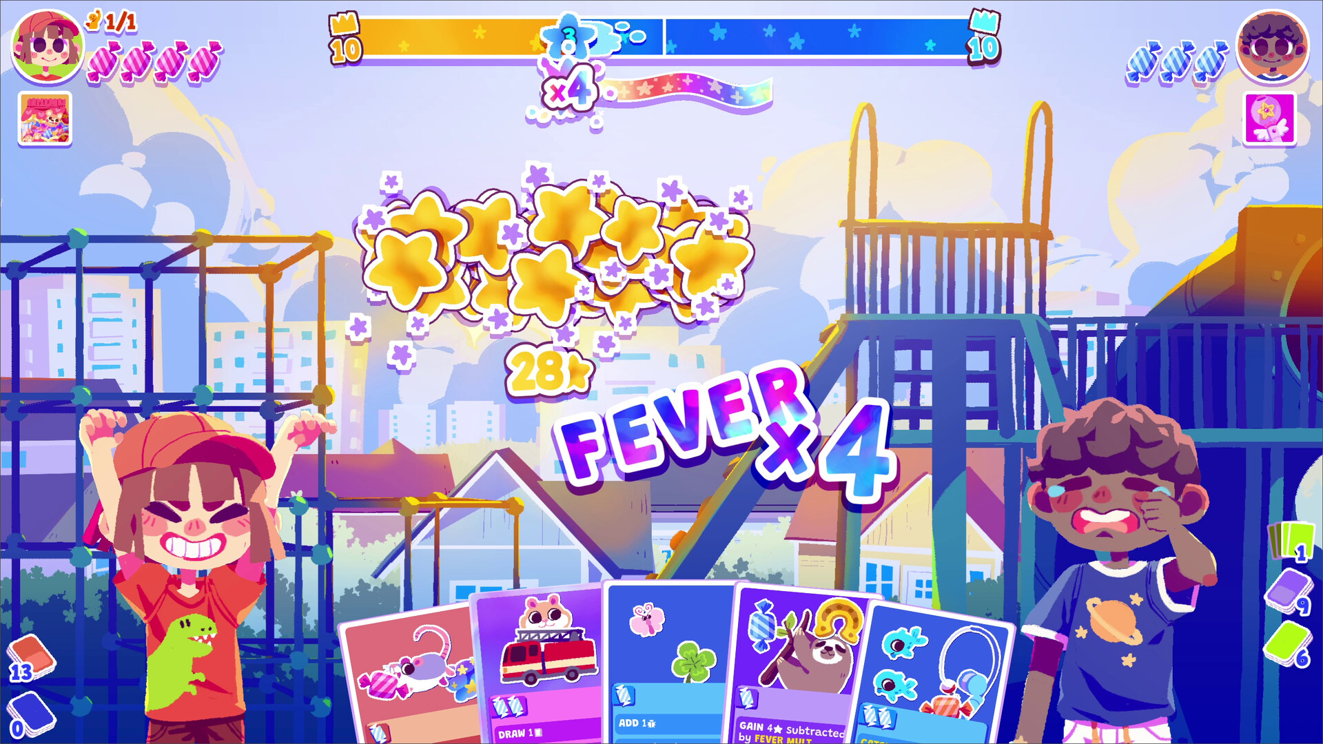 It’s time for a tug-of-war of coolness! Play your cards right to gain favor over your rivals and leave them in awe of your creations! Make use of the FEVER multiplier to turn the tide at the right moment!