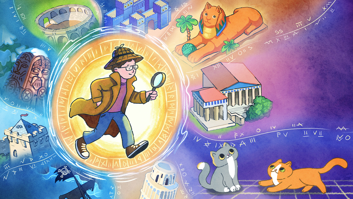 Travel through Mesopotamia, Ancient Egypt, Ancient Greece, the Roman Empire, the Viking Age, the Middle Ages, and the Golden Age of Pirates—each beautifully recreated with immersive visuals and playful historical details.