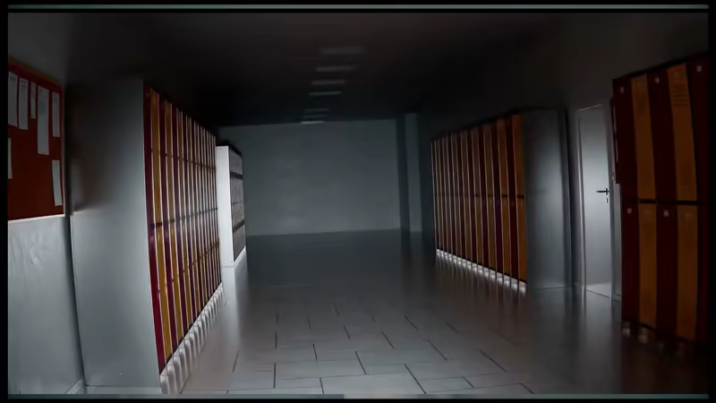 As she opens her eyes, she finds herself in an unfamiliar, eerie space. Flickering lights, a damp stench, the sound of dripping water breaking the silence.