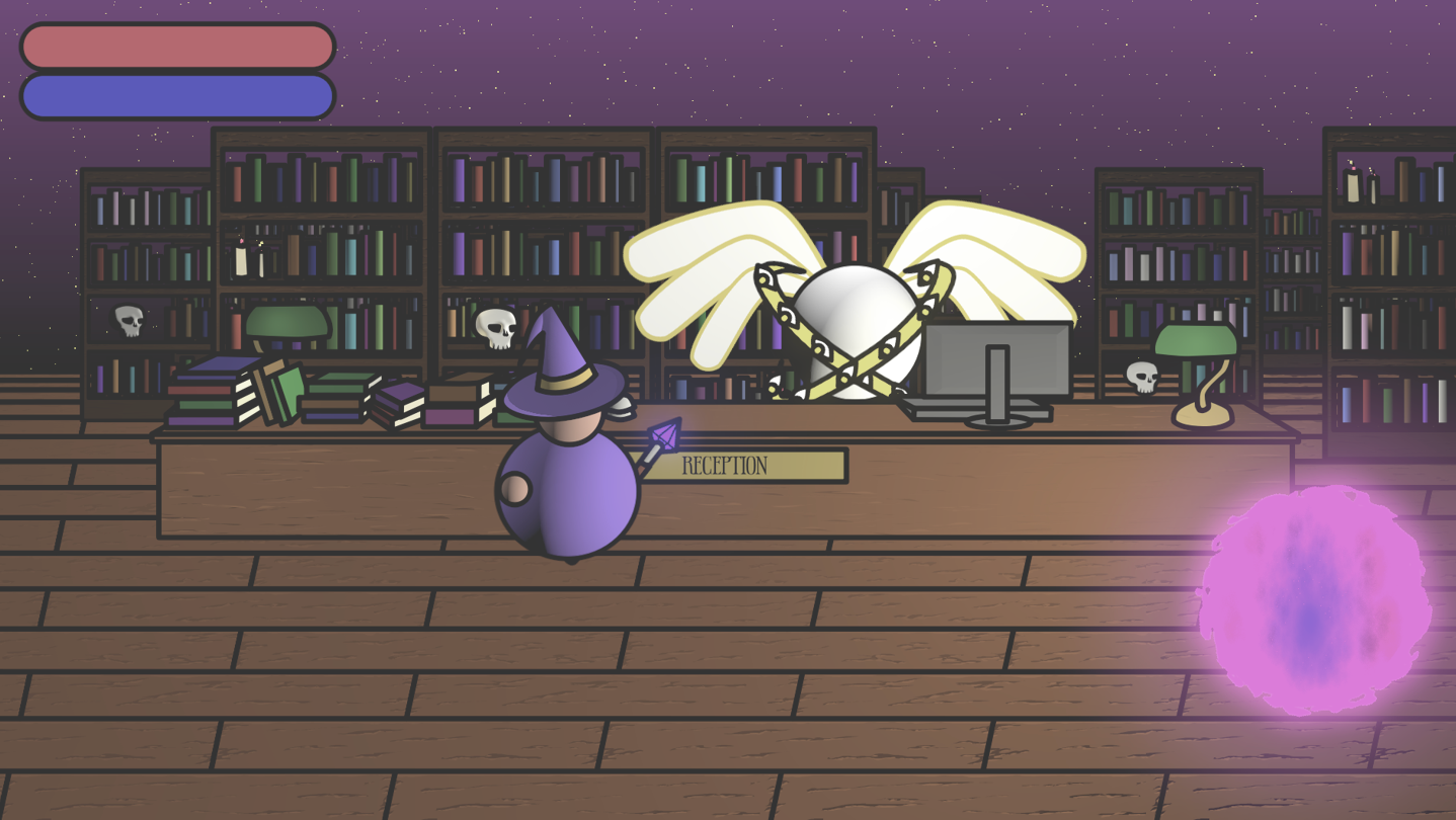Whispering Stacks is a cozy, rogue-lite side-scrolling zap-em-up where you play a wizard trying really hard to study at the library while its magical inhabitants do everything in their power to stop you