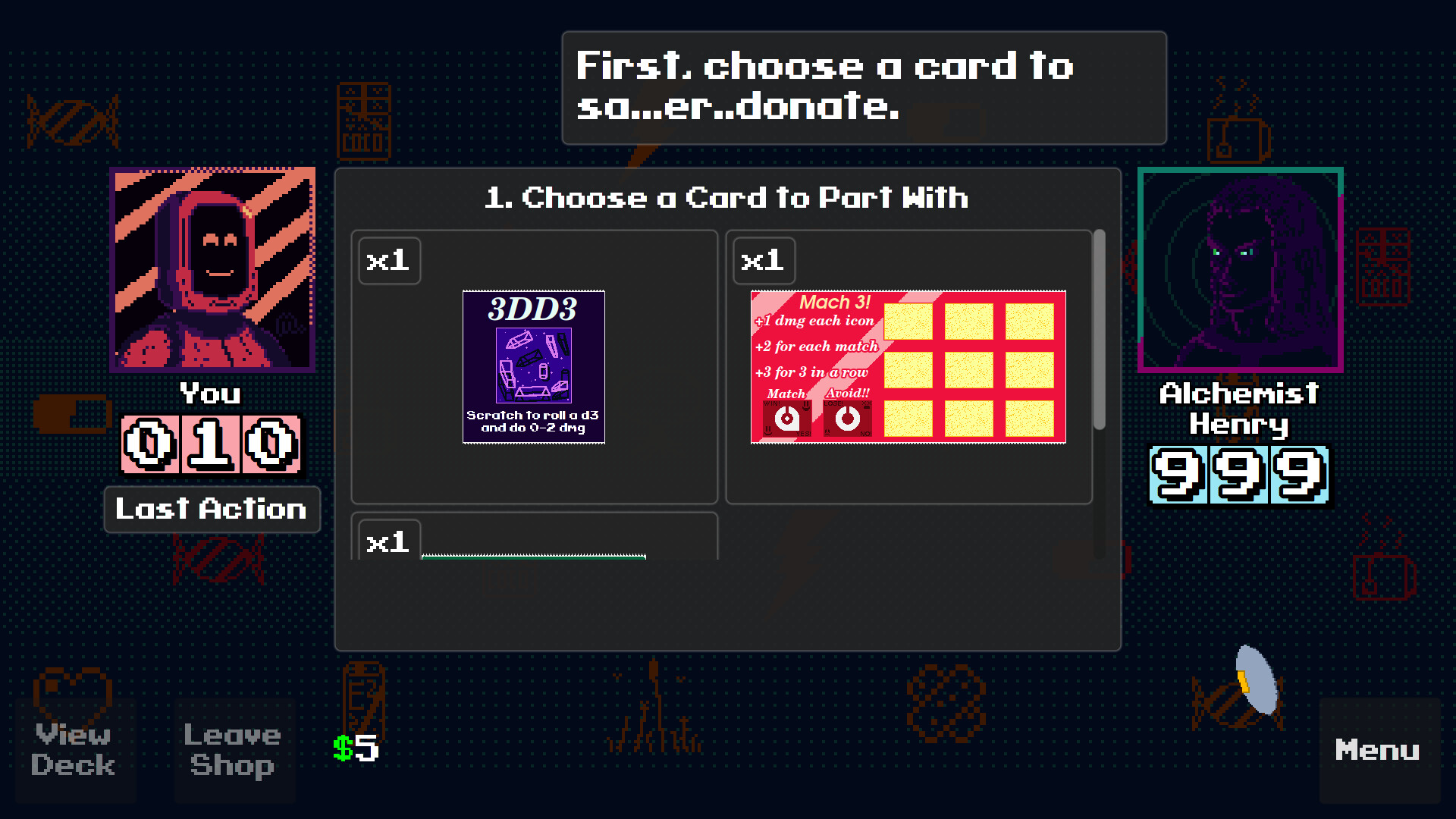 • Build your deck by buying new cards and converting cards into upgrades for other cards.