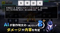 “ランダムの漢字群から4つの漢字を選んで作った呪文をAIが威力を判定し説明文を生成する。AI製の珍妙な解説が目的とするならばオススメ。4つの漢字を無理やり攻撃魔法としての解説するので、カオスなものが楽しめる。戦闘ゲームとして見ると、単調さと運ゲー具合は人を選ぶけど、個人的にはこれはこれでアリ。