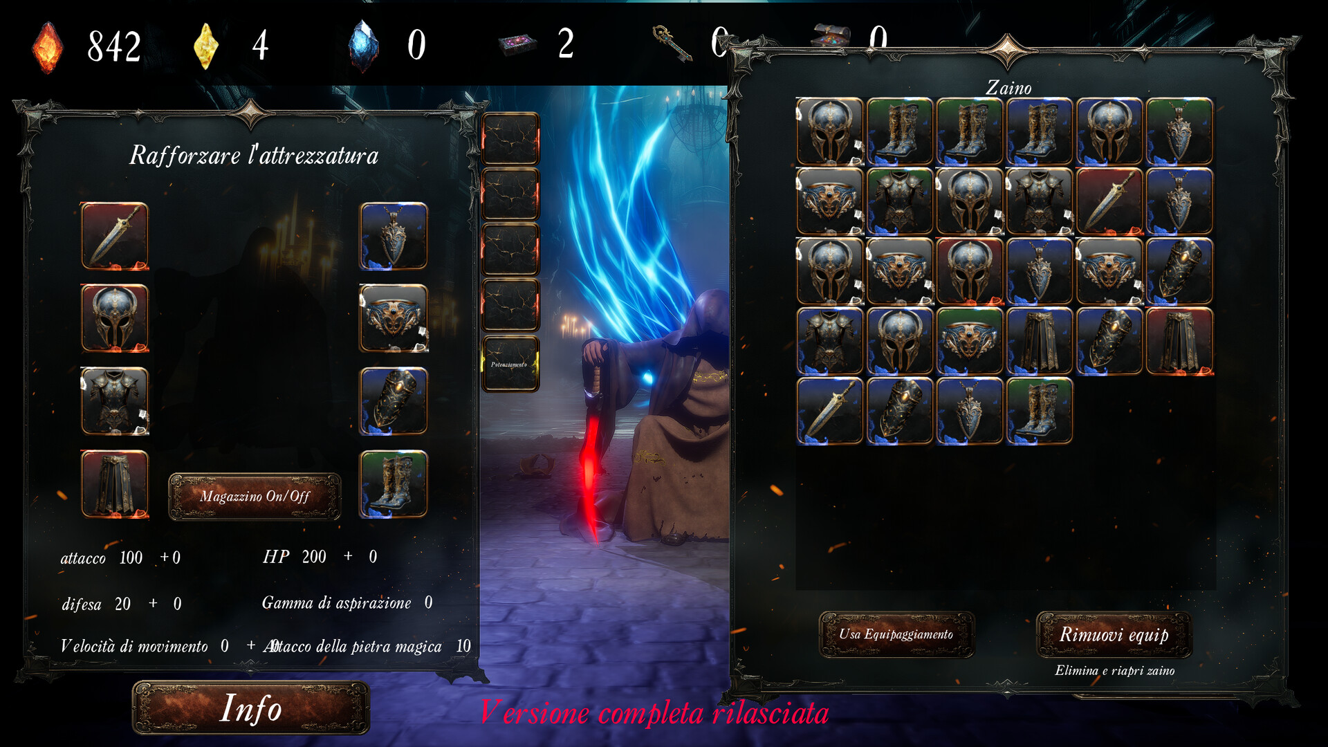 Forgia equipaggiamento potente con pietre forgia ottenute nei livelli. Con fortuna, puoi creare oggetti di qualità Perfetta.