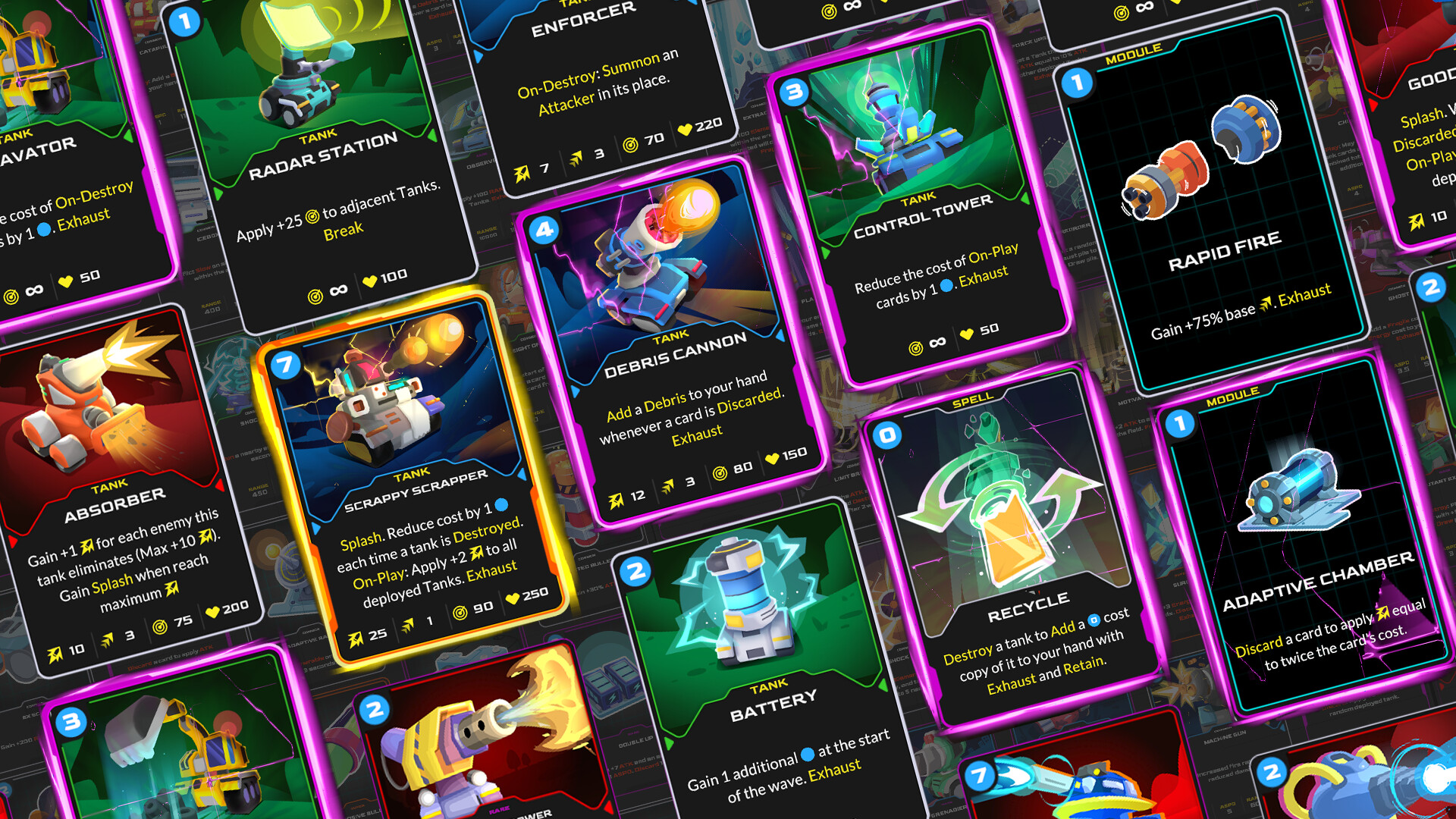 Mini Tank Mayhem offers endless possibilities to break the game or, essentially, survive one more wave. And that is where the true fun and mayhem begin. Combine hundreds of cards and artifacts to create game-breaking power to eventually obliterate your enemies.