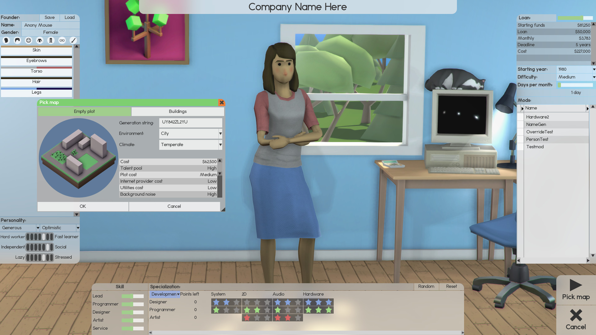 “The game currently features complex and expansive building mechanics, a very deep market simulation and an engrossing simulation of the day-to-day life of a software company. The game still lacks in content, but it has Workshop support with more to come. The game is not fully balanced and the core gameplay is still being revised.”