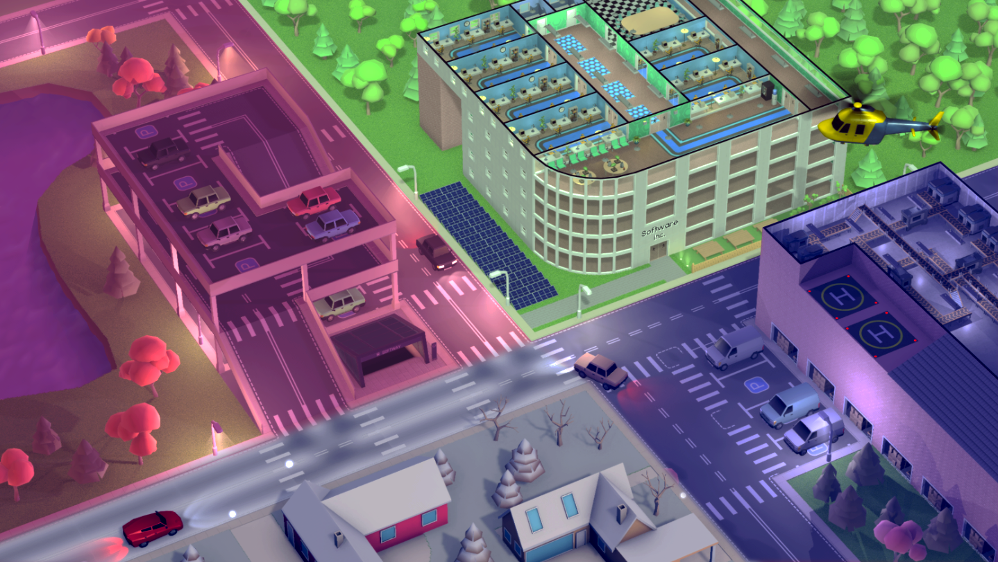 • Build, furnish, style and maintain office buildings up to ten stories + basement, on an enormous land, using a free-form building system with simple copy-paste tools