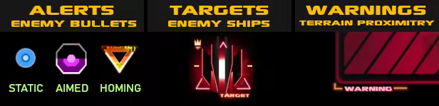 • Avoid enemy bullets, (bullet behaviours represented through shape, animation, and color).