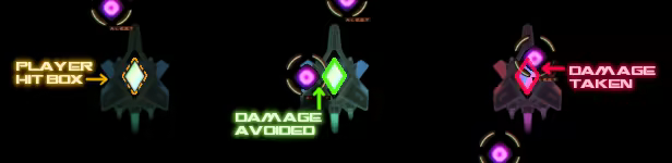 • Player hit box is the smaller central diamond (A.I. cluster shard)