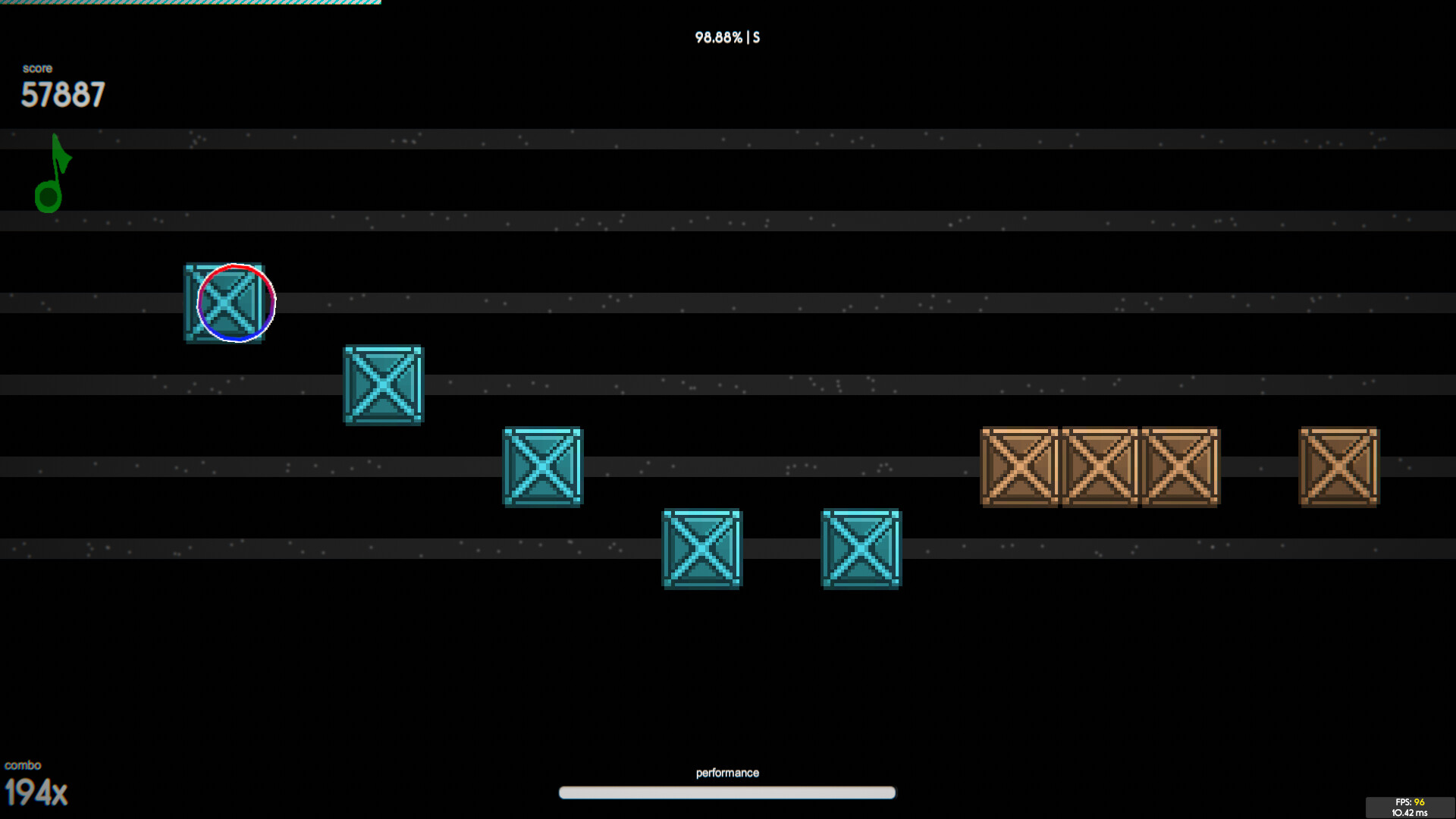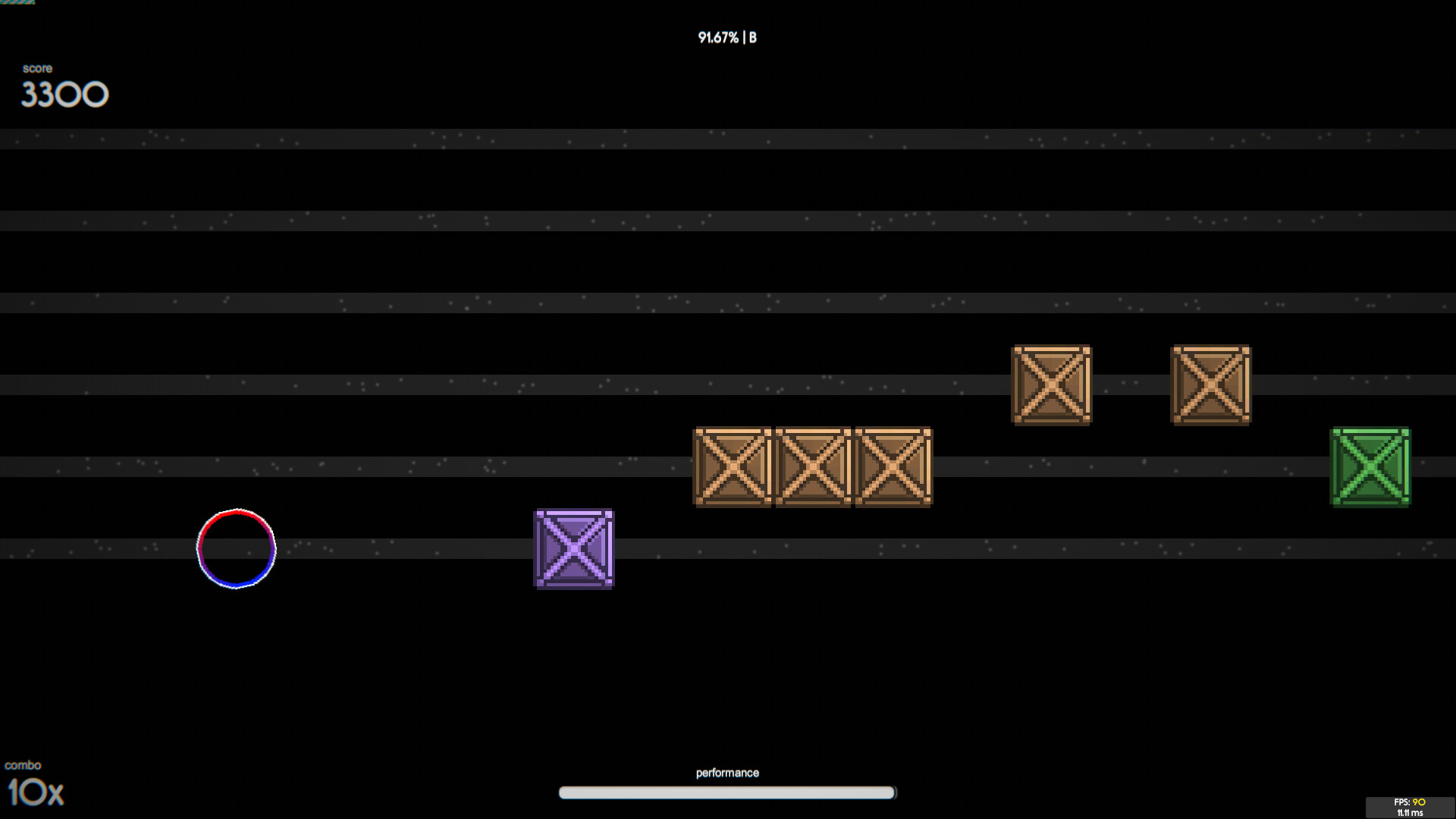 Jammer Dash is a 2D side-scrolling platformer rhythm game in which you destroy cubes on the beat! Move up and down with 6 different lanes, hold down longer cubes and make your own levels in the editor!