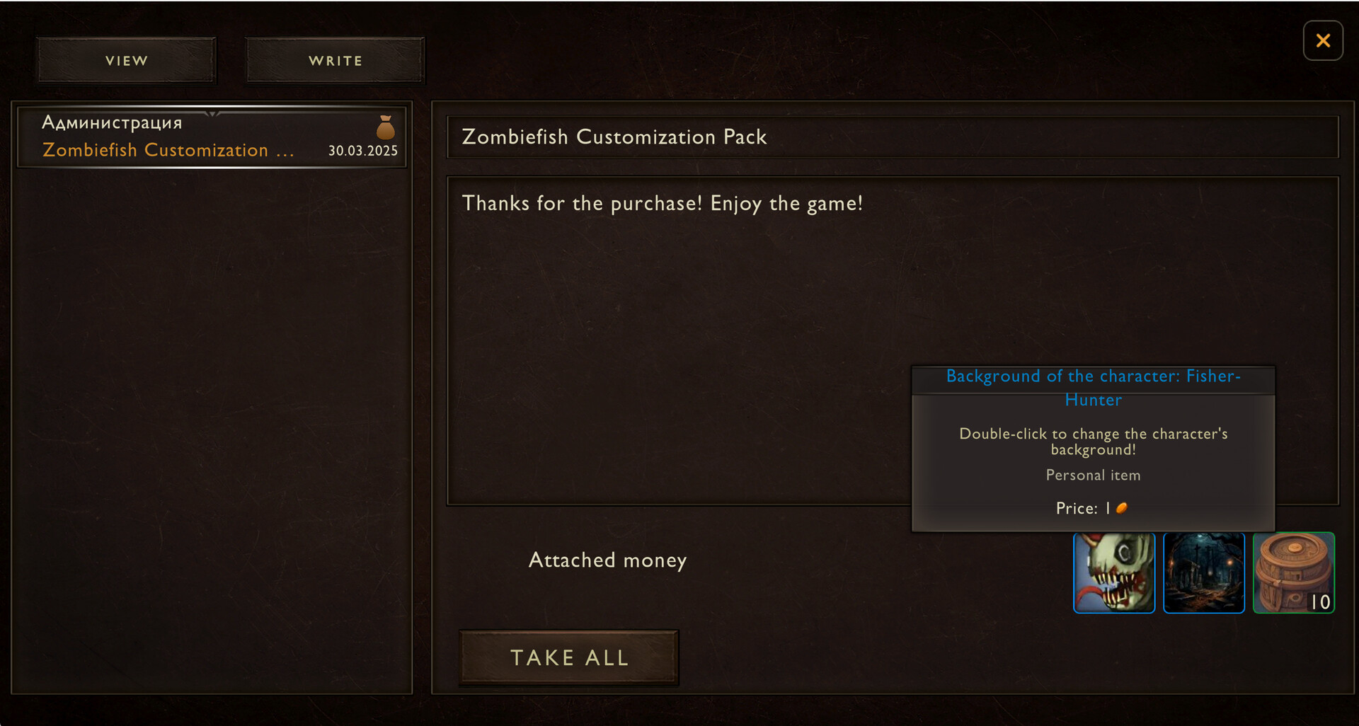 Fisher-Hunter Background – a rare customization item that replaces the current character window background and is added to your collection.