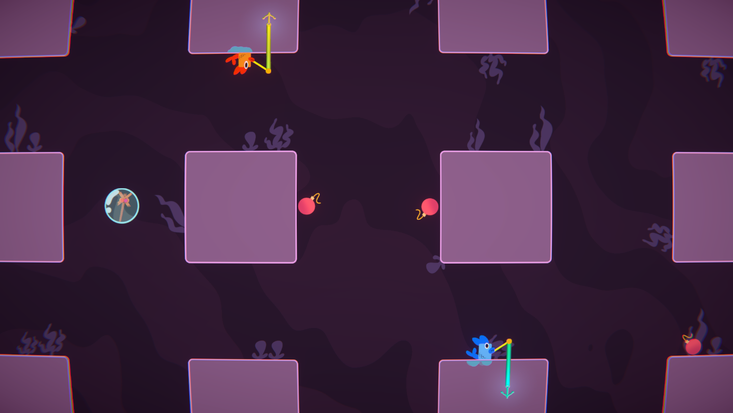 Fish Chips & Bombs is a tight, fast paced, twin stick shooter roguelike with a unique movement + gun swap system that offers a creative take on the platforming genre with variety of power-ups that keeps the fish fresh