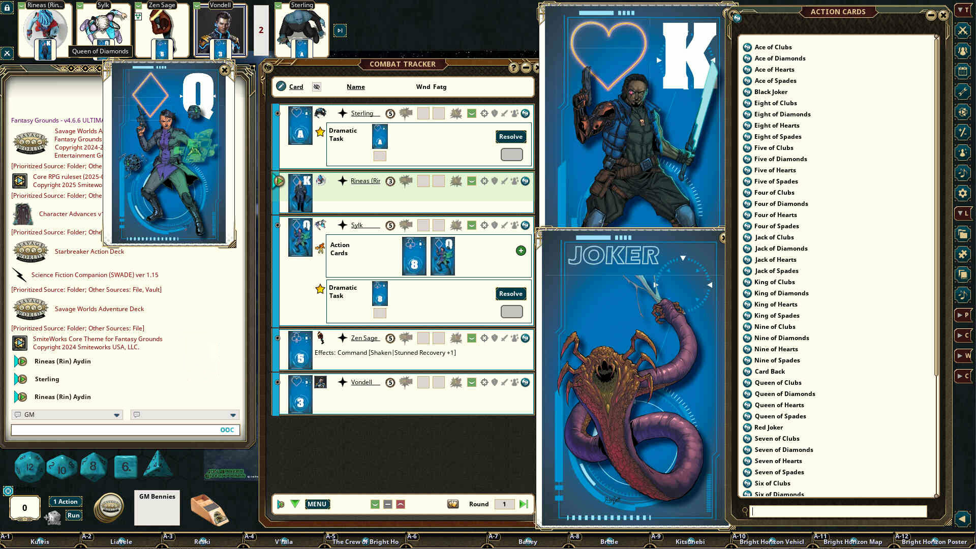 STARBREAKER themed Sci-Fi playing cards than can also function as an action deck for Savage Worlds Games.
