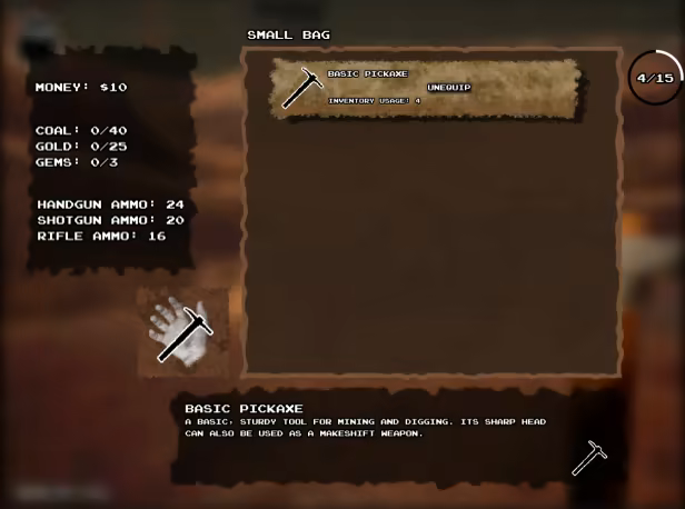 • Status effects - Different enemies will cause status effects like bleed which can be treated with items like bandages as well as some status effects being inflicted on to the player by different areas of the mine