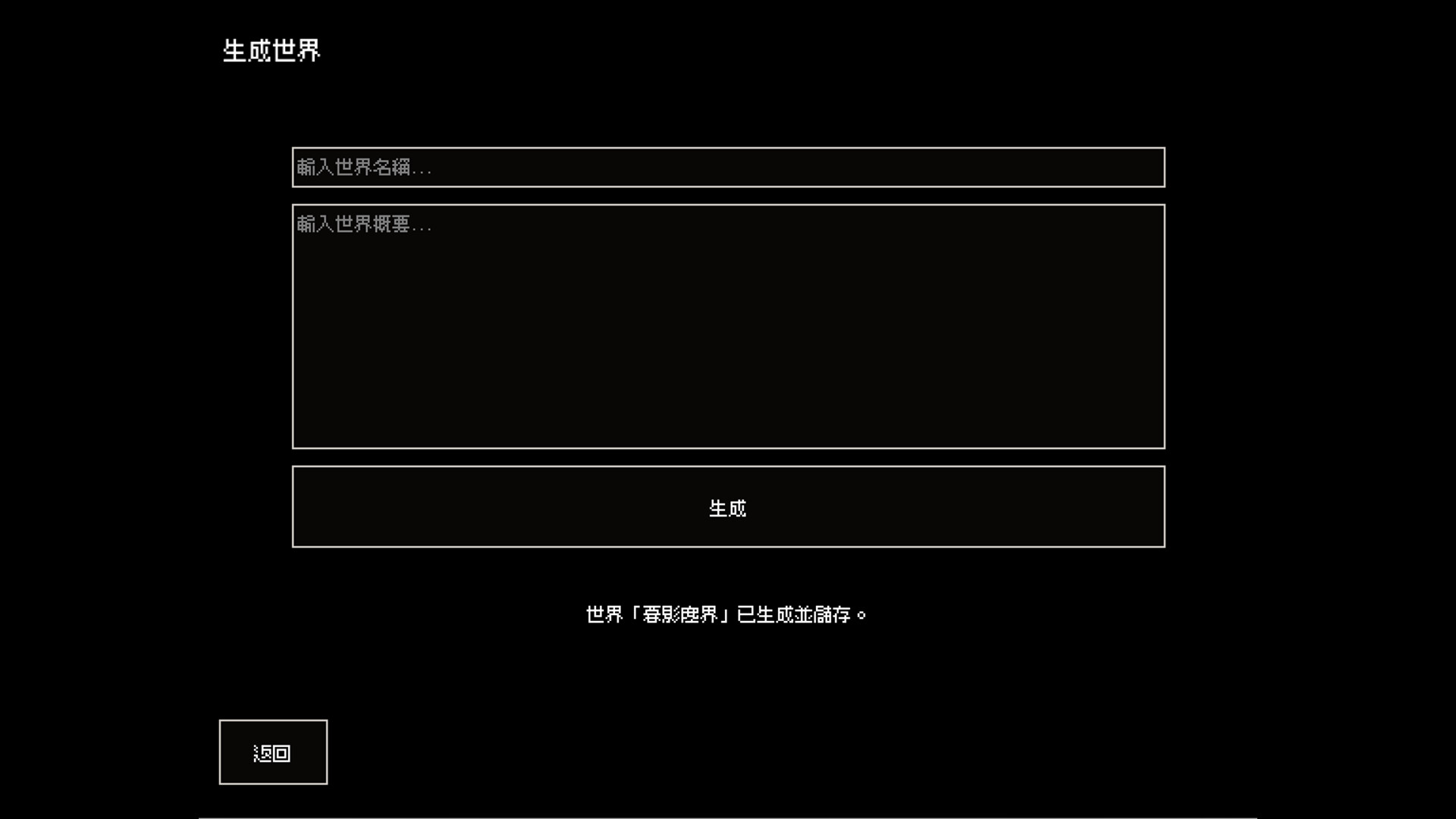 世界、地城、NPC、道具、故事,一切都由 AI 動態生成的角色扮演遊戲。 玩家可以創造只屬於自己的角色,在專屬的世界中自由行動,與 NPC 互動,並挑戰各式各樣的任務。 隨著歲月流逝,角色終將老去並走完一生,而你將以全新的存在,展開另一段不同的人生。
