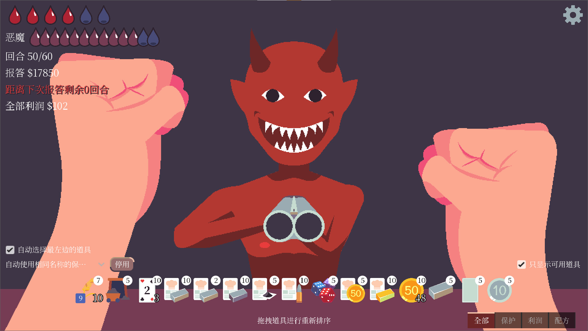 在回合结束时,恶魔会慷慨的提供一件免费的道具。