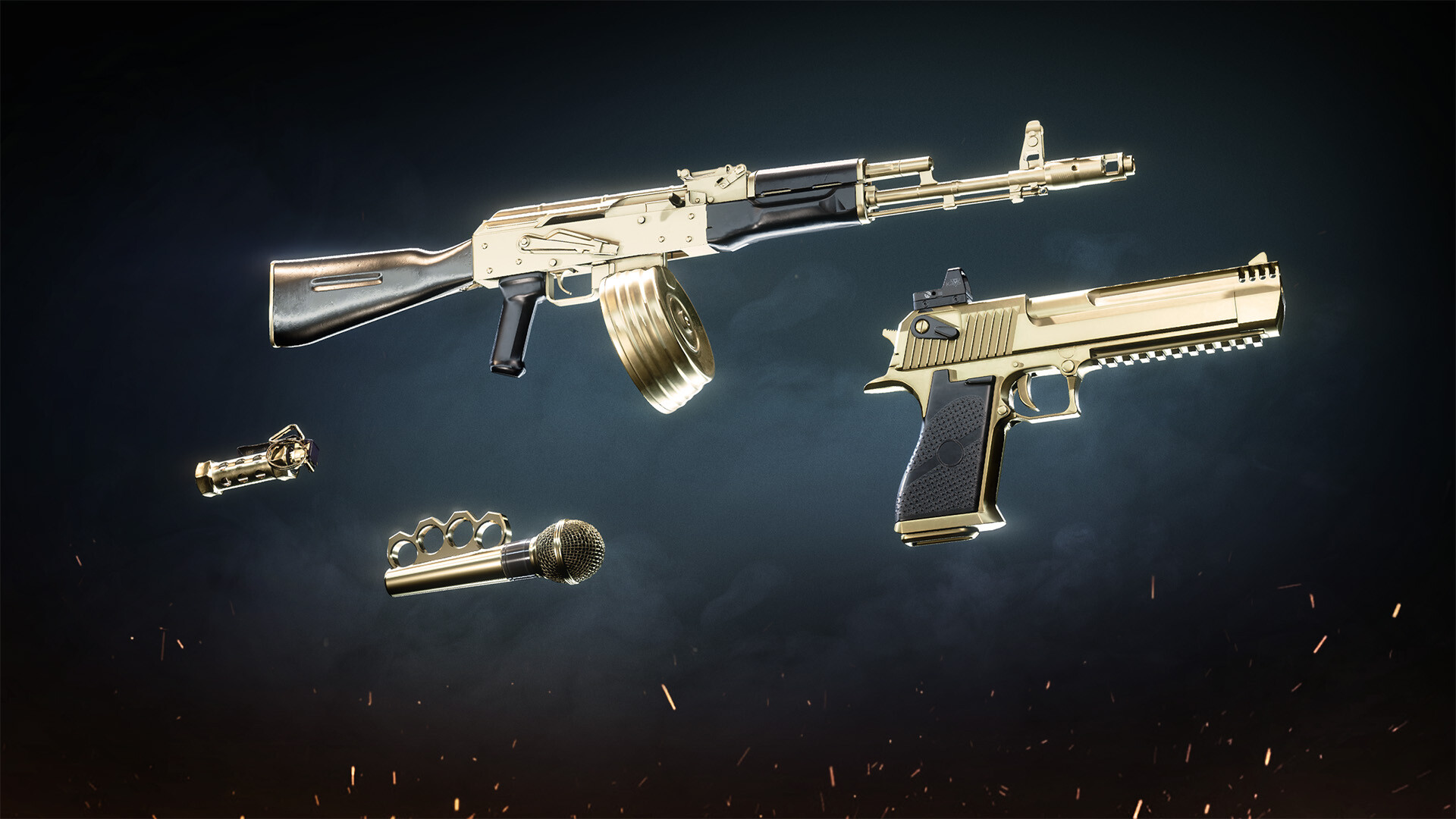 Unlock Golden Boy Hielo and bask in his gold standard loadout. Hielo has always been a little vain but this time he is taking it up a notch with some glittering weapons that are sure to make a statement.