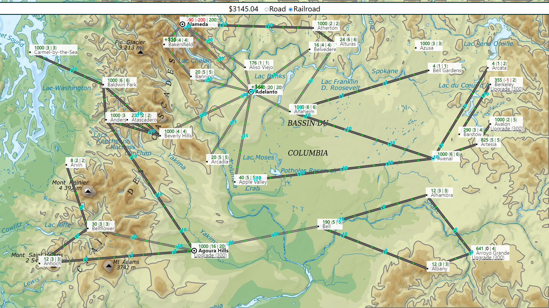 The game is full of explore-exploit tradeoffs. Do you invest in one big city and build it up, or spread your resources across several smaller hubs? Should you trade goods now to build more railroads, or stockpile for future upgrades? Is that expensive route through the mountains worth it, or is there a smarter configuration?