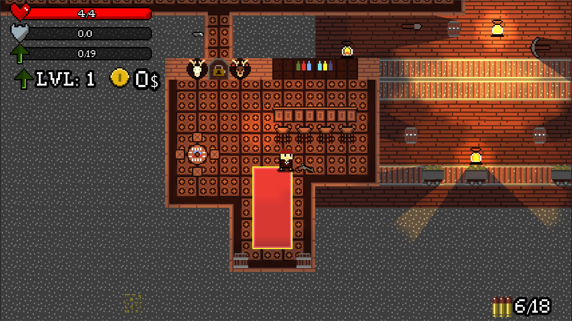 In Western Death, you navigate through rooms, slaying creatures, earning experience, and collecting new weapons. With each level-up, you can choose from various cards that grant unique perks and bonuses, enhancing your abilities and playstyle.