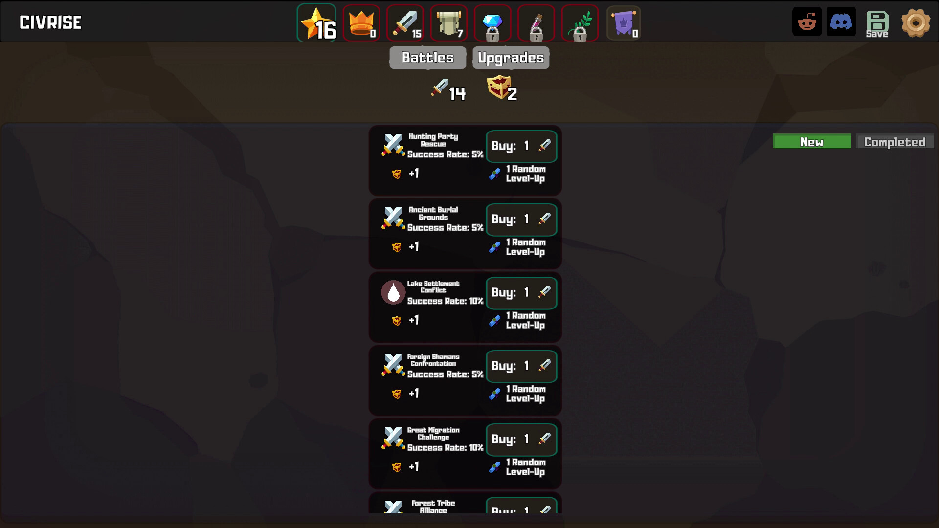 Train and deploy armies to conquer neighboring territories. Each battle presents different challenges and rewards, with your success dependent on your military strength, technological advancement, and strategic upgrades. Victory brings honor points to enhance your military capabilities and valuable knowledge for your civilization.