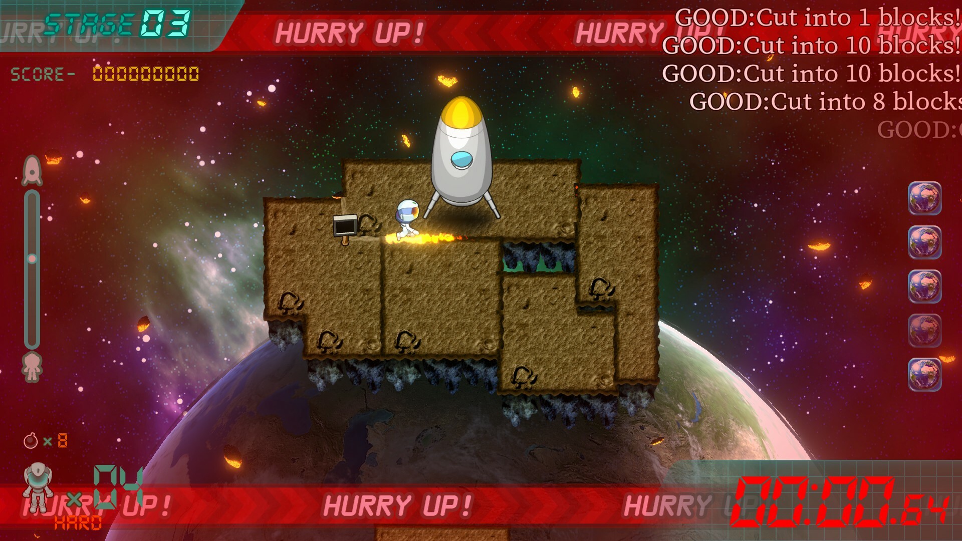 "Earth Saver" is an exhilarating action game in which you blow up and dismantle a giant meteorite approaching the Earth! If you successfully split it, the meteorite will burn up in the atmosphere and the Earth will be safe! Connect and blow it up, split it neatly, and feel the maximum exhilaration!
