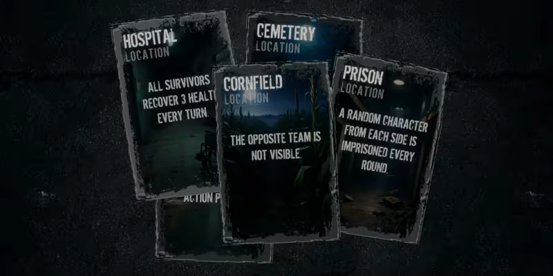 Every few rounds, a new location is drawn, lasting for a set duration and introducing effects that impact one or both sides.