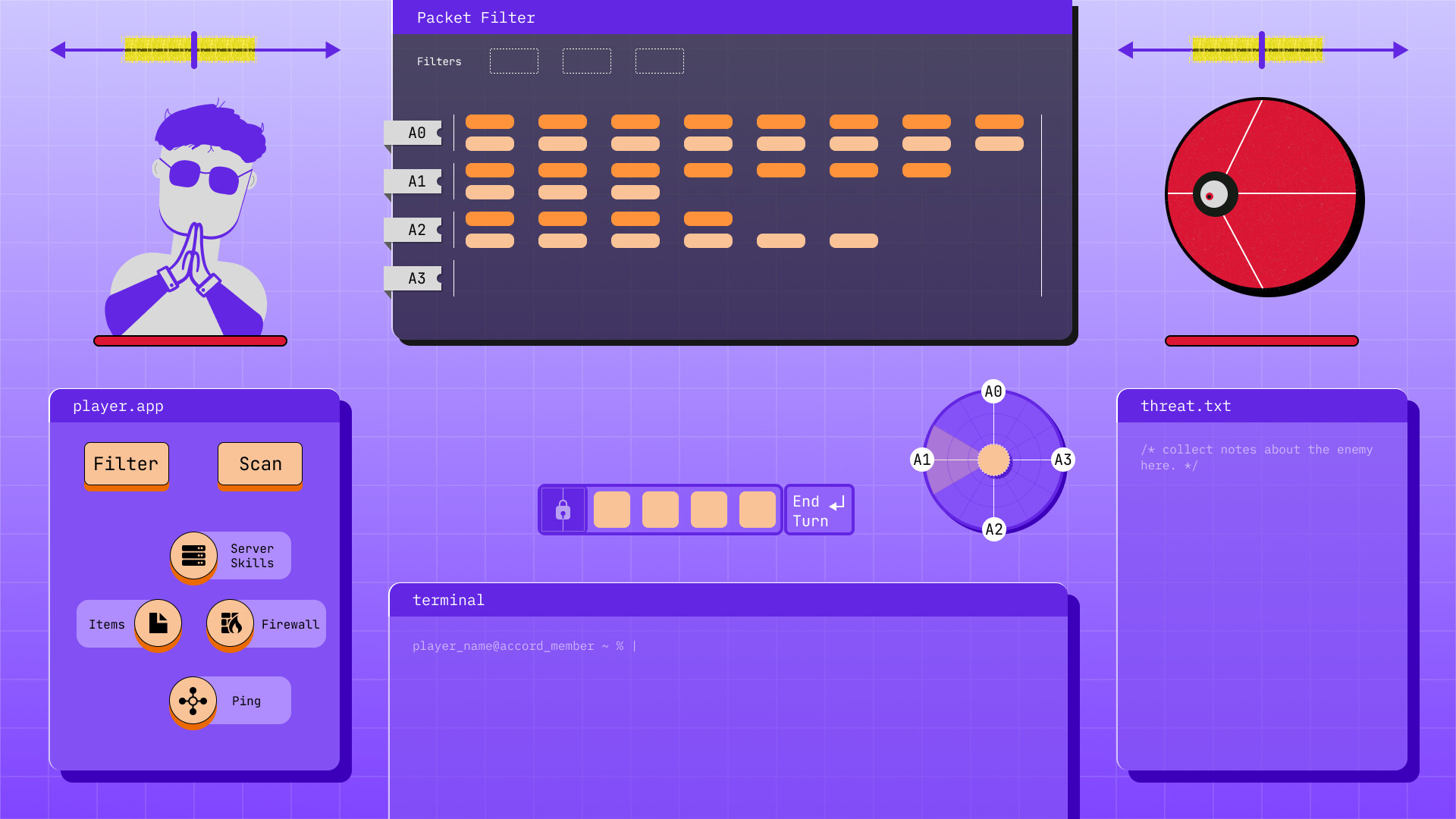 Face off in strategic, turn-based battles against bots that exploit vulnerabilities in your community. Unravel the mysteries behind these attacks, connect with the humans at risk, and safeguard the digital realm in serverBound—an investigative RPG that transforms cybersecurity into an epic adventure