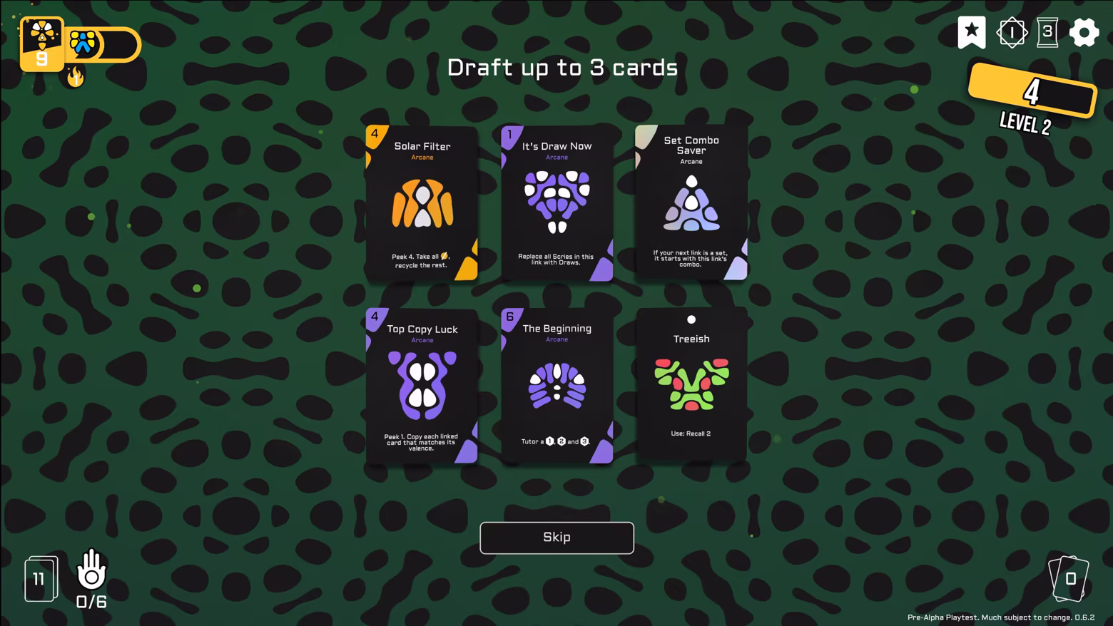 Overcome pattern cards that infiltrate your deck and disrupt your strategy. Each requires specific links to defeat, adding another layer of tactical depth. Defeated patterns grant the player drafts, which can be used to gain new cards, encounter events or take aspects.