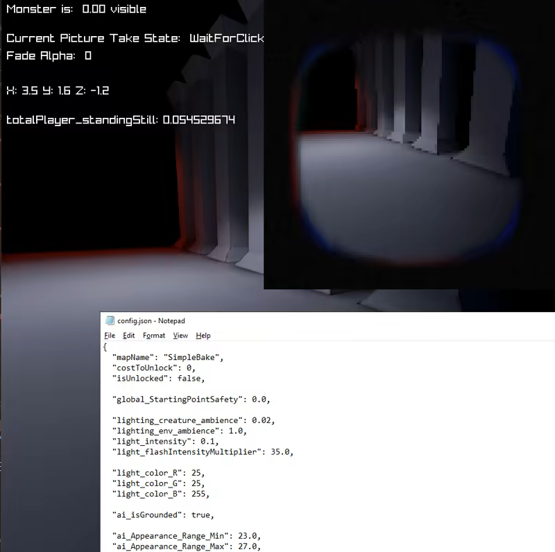 Inspired by old computer hunting games... players can earn points upon successfully capturing a creature on camera. And spend those points on more dangerous maps.