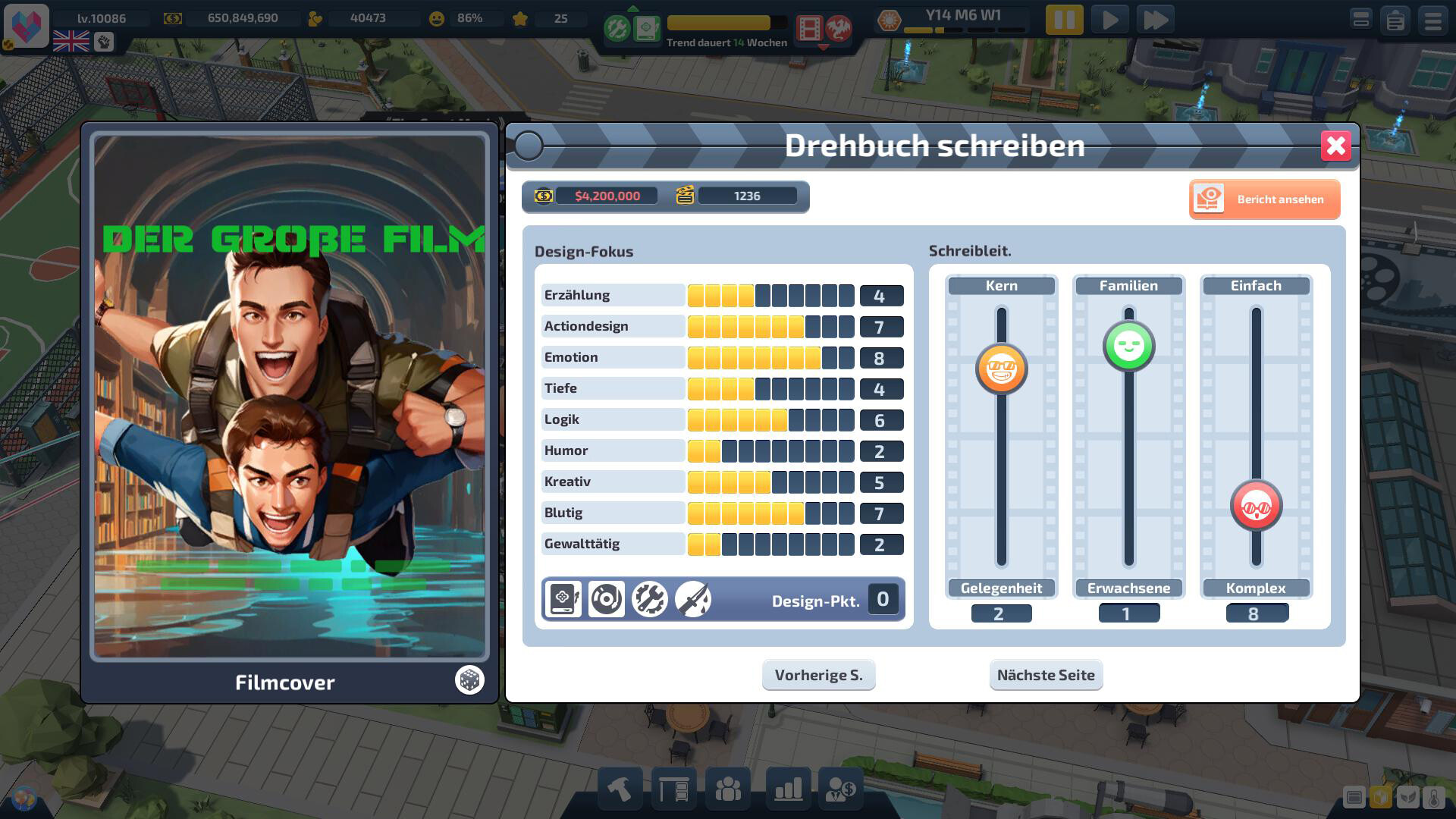 Werden Sie ein Film-Mogul in Super Movie Tycoon! Vom Drehbuch bis zur Leinwand - bauen Sie Ihr Traumteam auf und erobern Sie Hollywood!