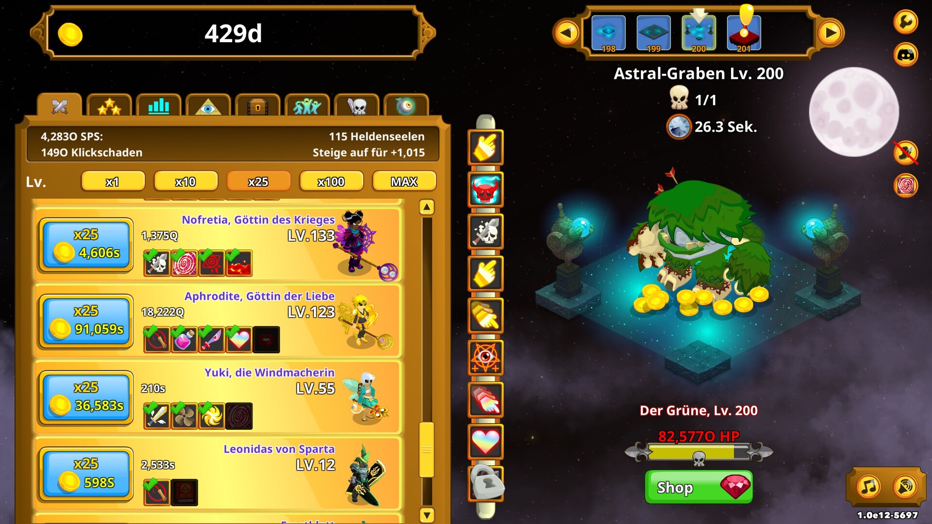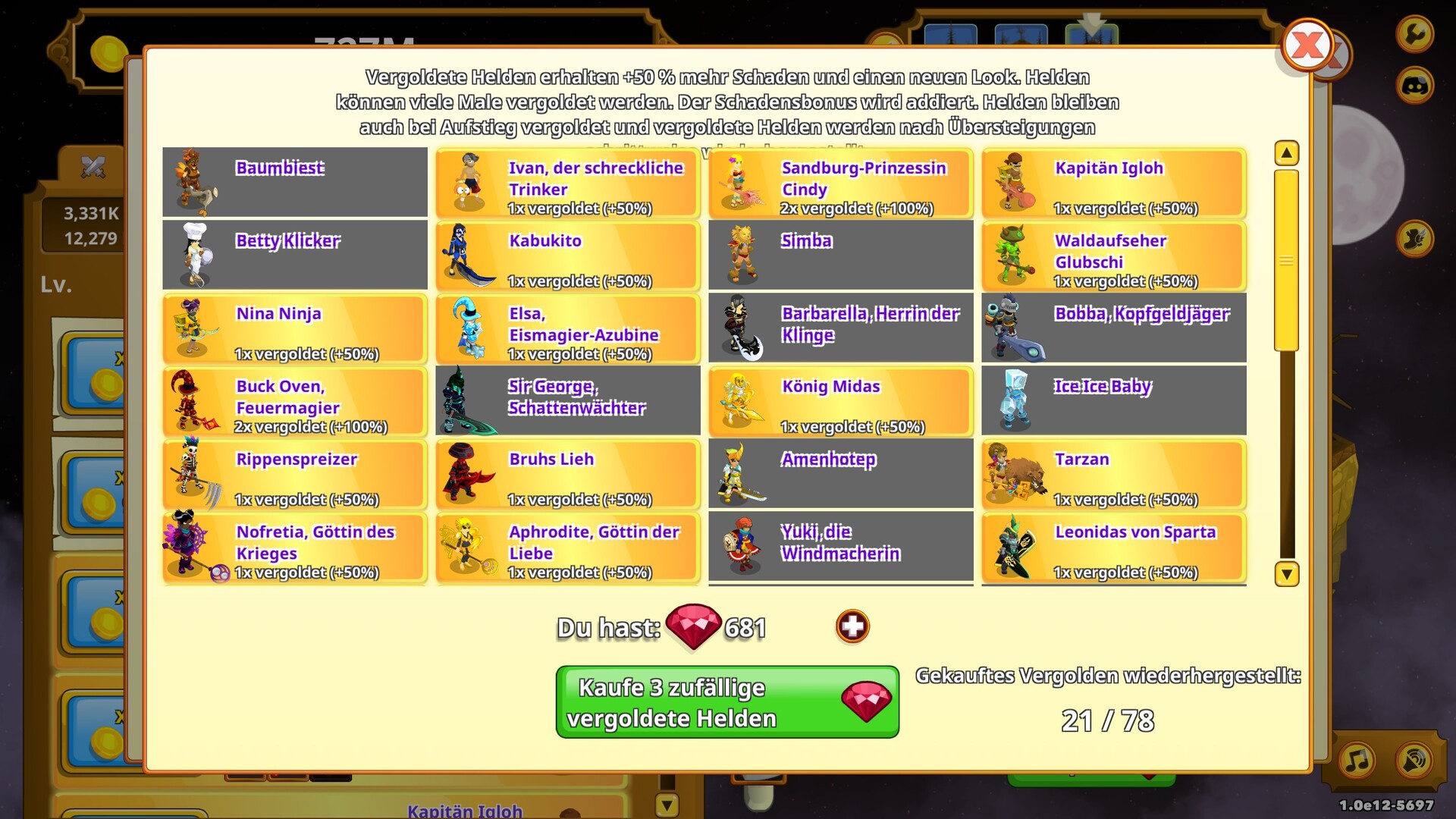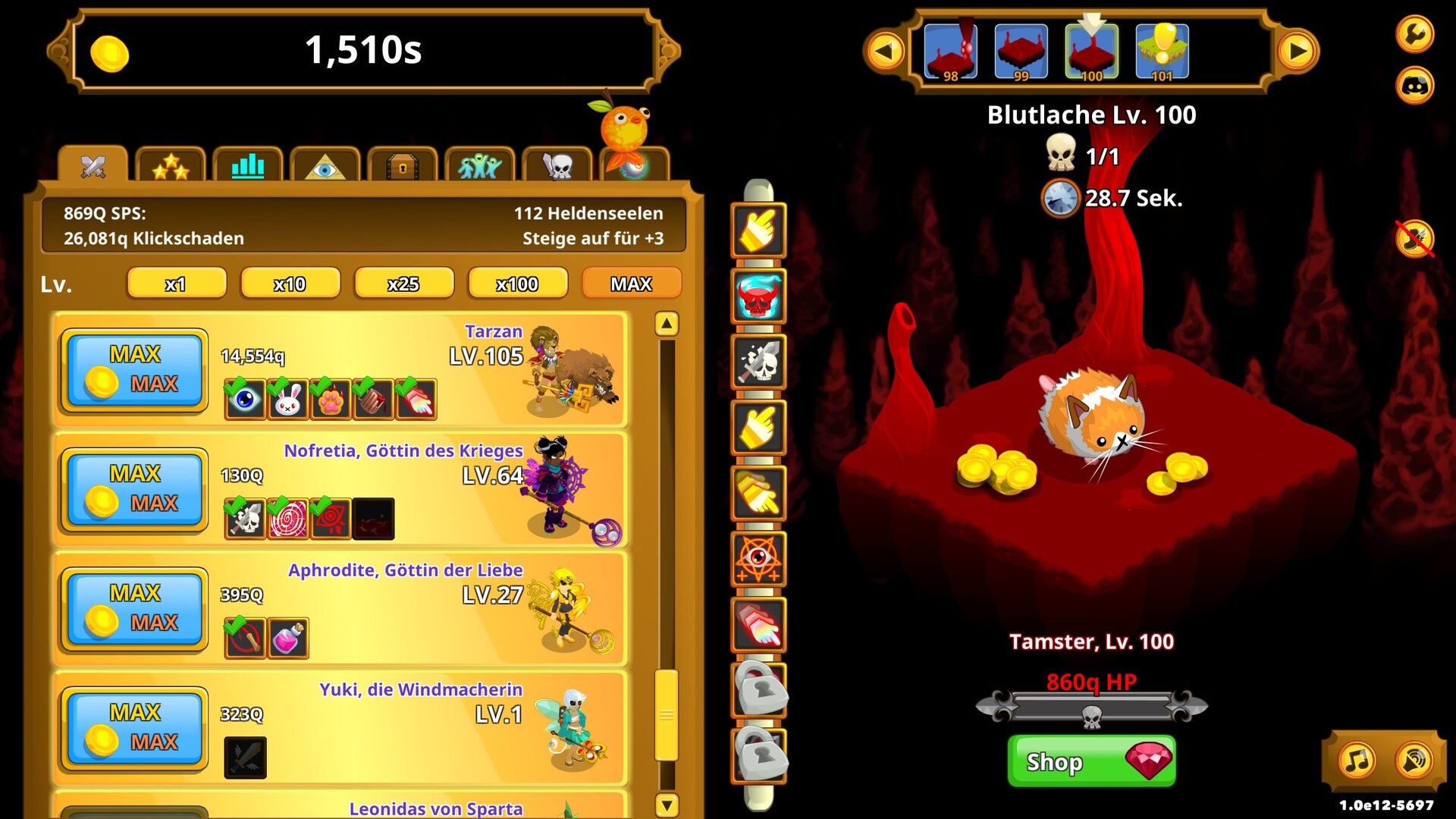 Heuere 45 einzigartige Helden an, die Schaden für dich verursachen, ohne dass du klicken musst! Triff legendäre Figuren aus Sagen und Legenden, wie Athena, Amenhotep, König Midas und viele mehr! Sie alle kämpfen für dich – natürlich nicht umsonst.