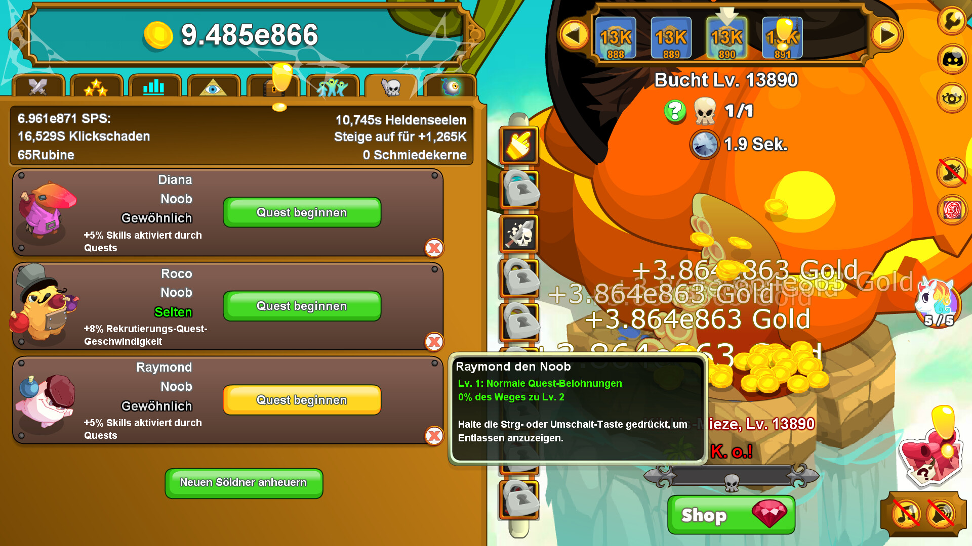 Hast du dich schon mal gefragt, wie es sich wohl anfühlt, eine Quadrillion Schaden pro Sekunde zu verursachen? Jetzt kannst du es herausfinden! Begib dich auf deine Mission, um mal richtig viel Schaden anzurichten!