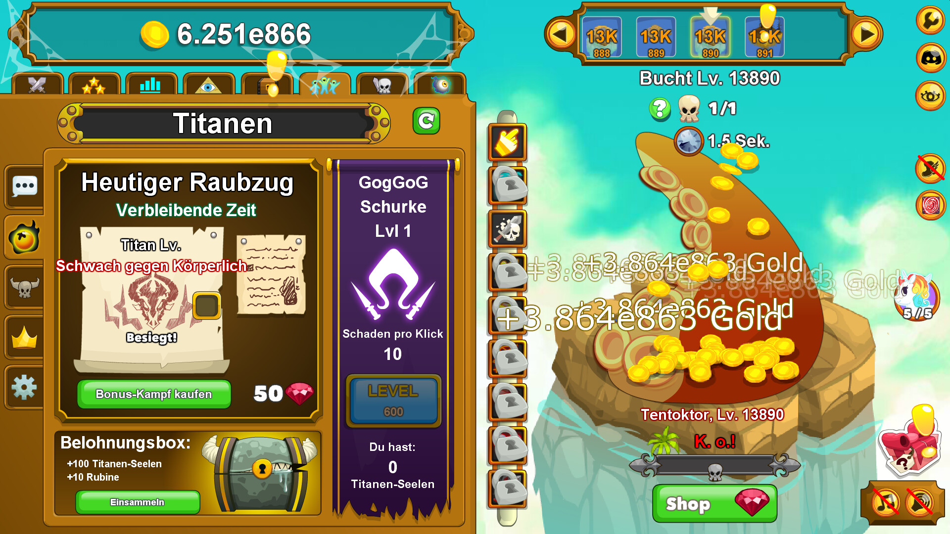 Diese Jungs hauen so hart zu, dagegen wirken deine MMO-Charaktere wie Vorschulkinder. Gib deine hart verdiente Beute für Upgrades aus, die deinen Helden Spezialkräfte verleihen, damit sie dir noch mehr Gold bringen!