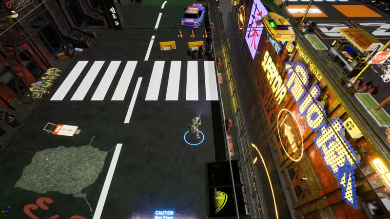 Domina el caos balístico en este shooter top-down ambientado en un cyberpunk implacable. Combina disparos precisos, hackeos tácticos y evasiones frenéticas. Juega la demo gratis.