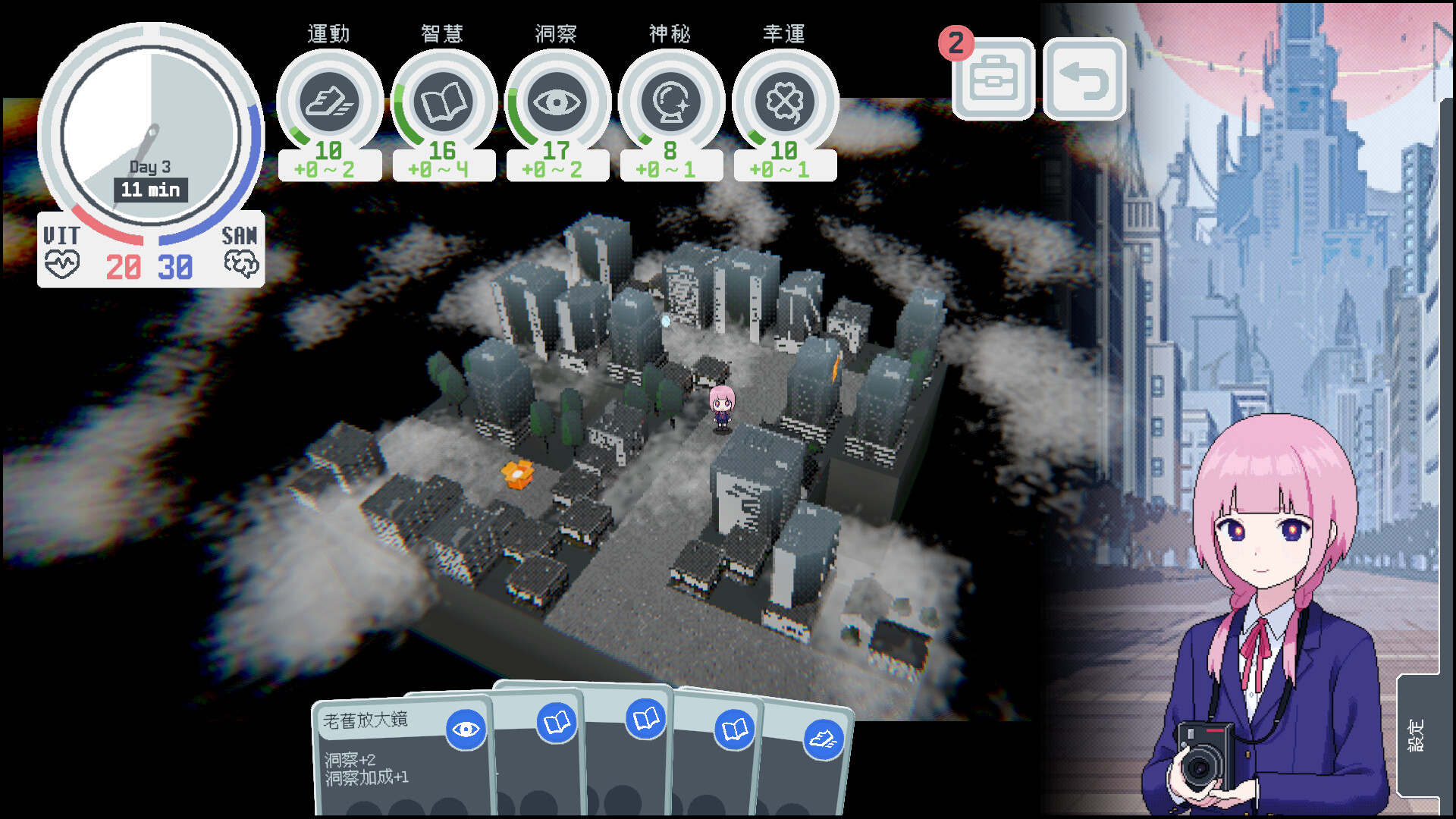 各事件將會針對「運動」、「智慧」、「洞察」、「神秘」、「幸運」這五個屬性進行「調查判定」。