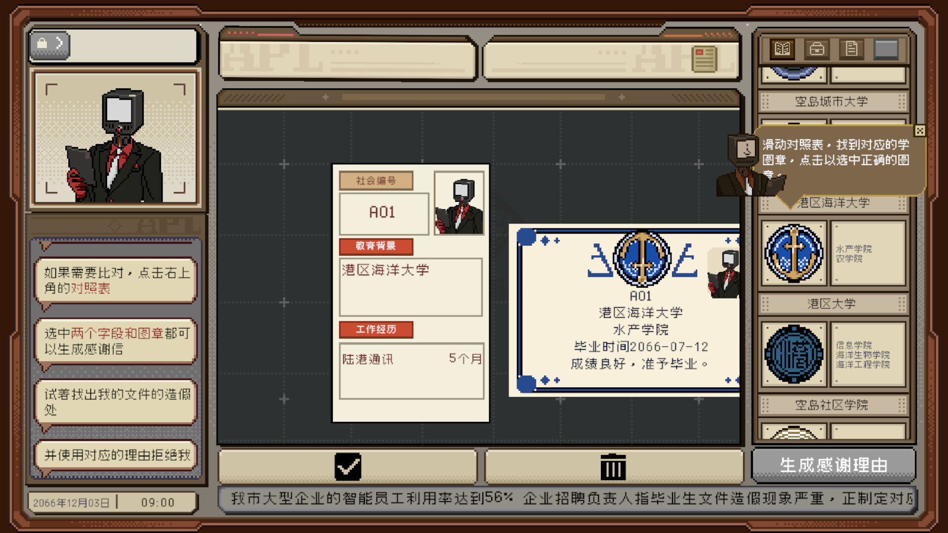 《感谢你的投递》是一款面试游戏。你将扮演刚毕业的大学生进入空岛集团担任招聘面试官,筛选应届生的简历,使用不同的淘汰理由发出感谢信。在努力想要通过试用期的同时,你对自己的工作和牛马生活产生了疑虑......